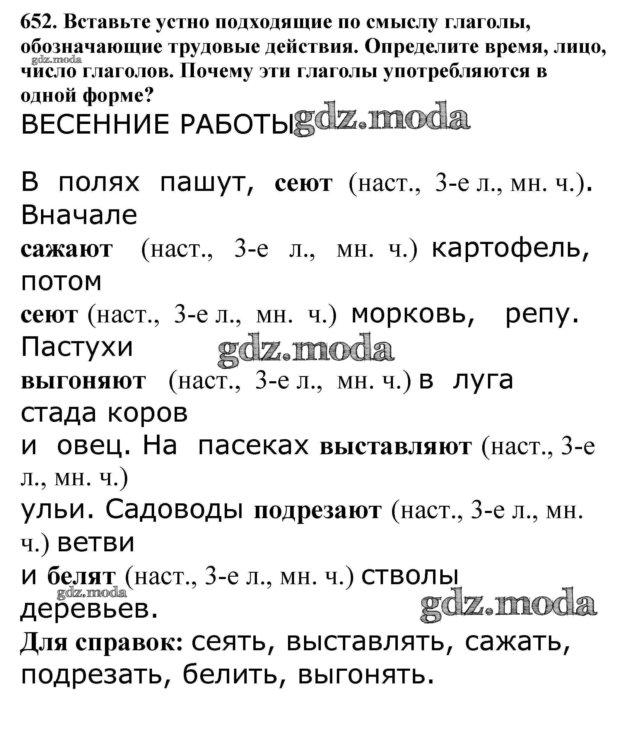 ОТВЕТ на задание № 652 Учебник по Русскому языку 5 класс Баранов