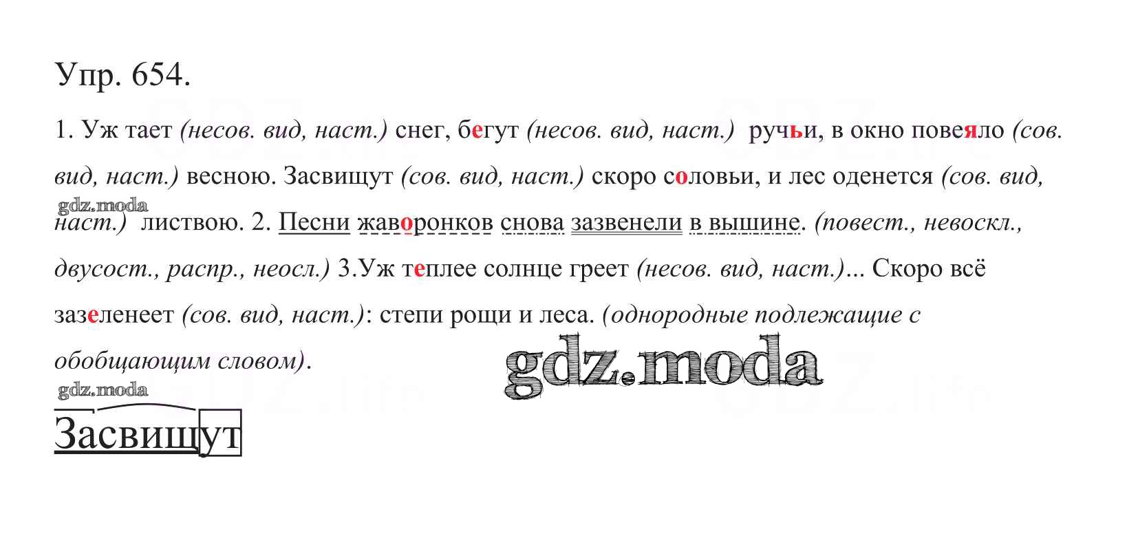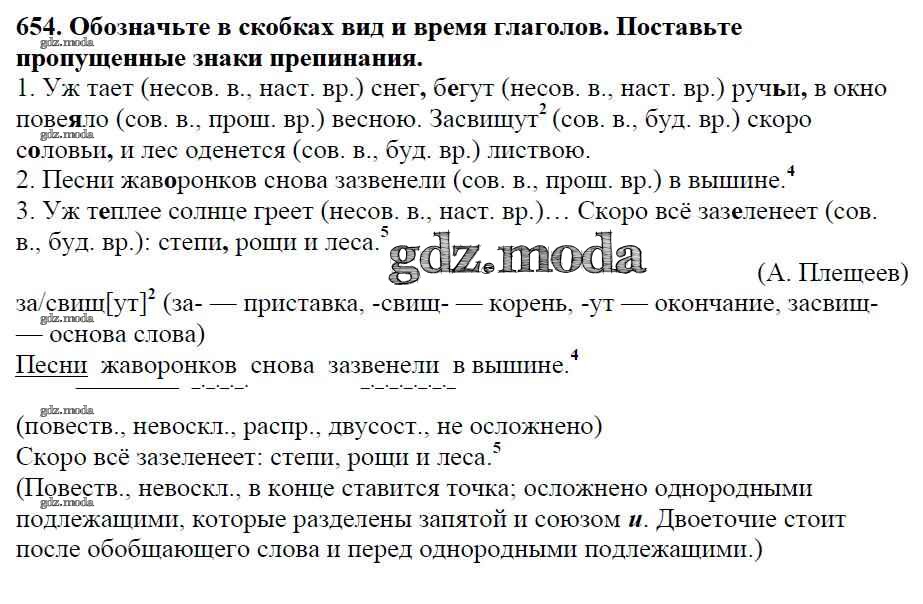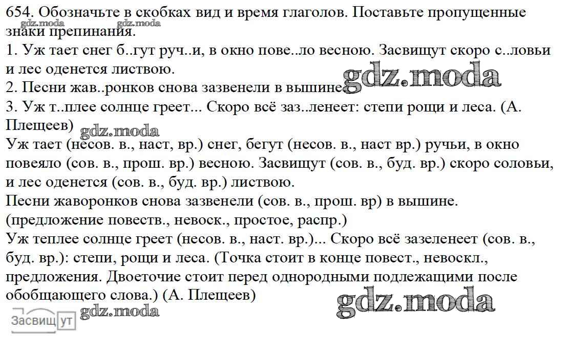 ОТВЕТ на задание № 654 Учебник по Русскому языку 5 класс Баранов