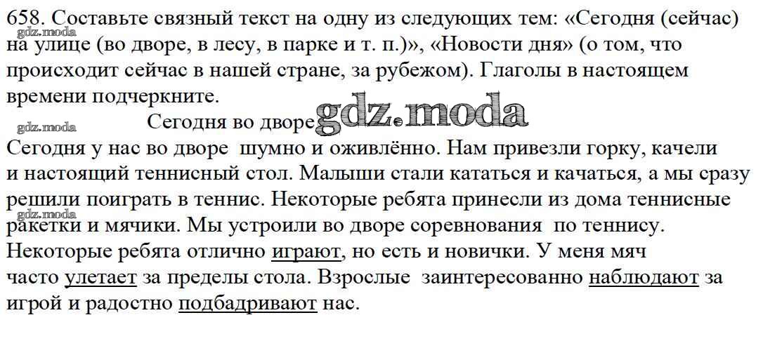 ОТВЕТ на задание № 658 Учебник по Русскому языку 5 класс Баранов