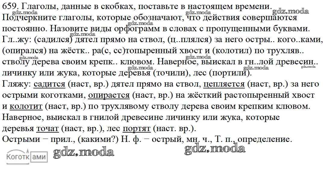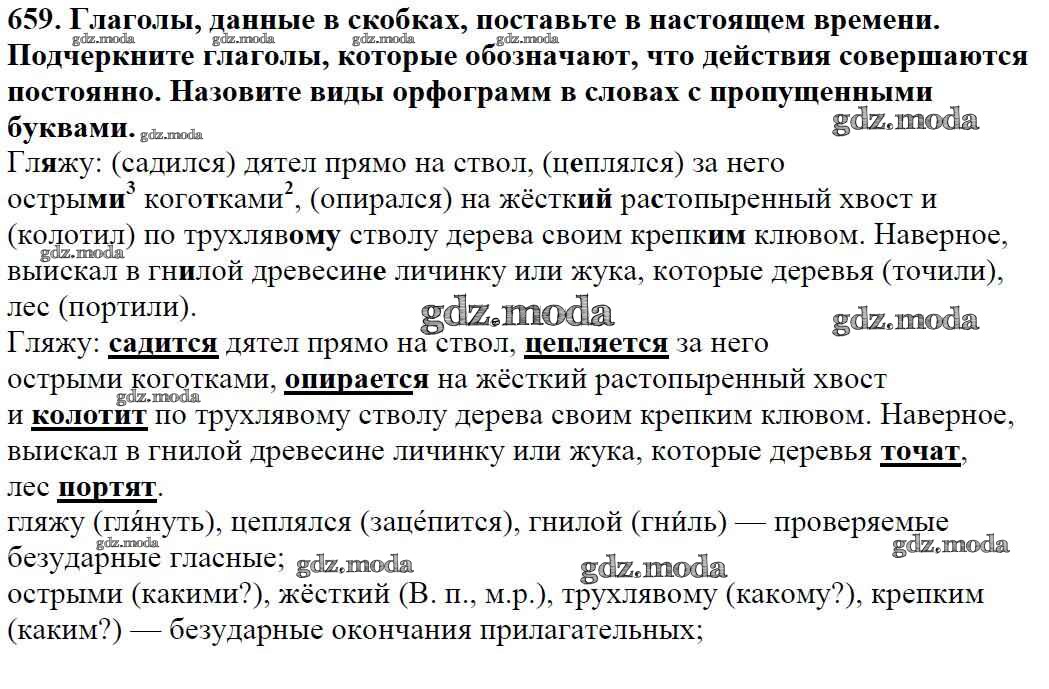 ОТВЕТ на задание № 659 Учебник по Русскому языку 5 класс Баранов