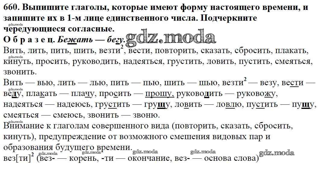 ОТВЕТ на задание № 660 Учебник по Русскому языку 5 класс Баранов