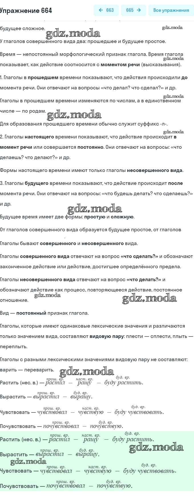 ОТВЕТ на задание № 664 Учебник по Русскому языку 5 класс Баранов