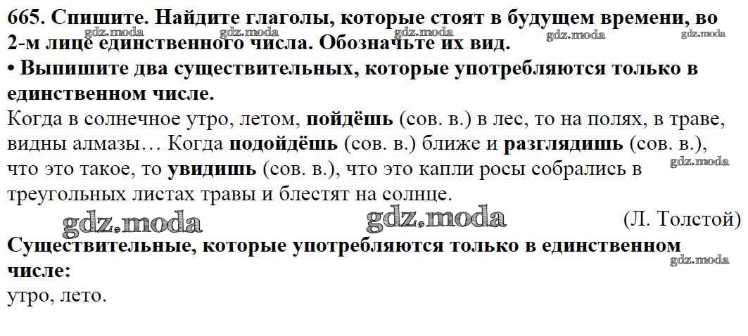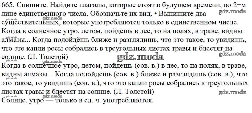 ОТВЕТ на задание № 665 Учебник по Русскому языку 5 класс Баранов