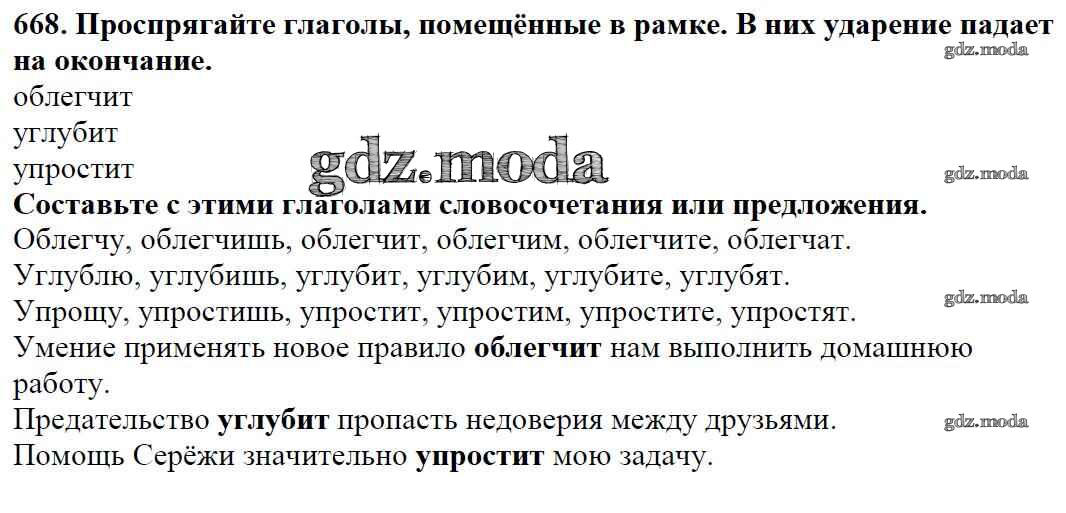 ОТВЕТ на задание № 668 Учебник по Русскому языку 5 класс Баранов