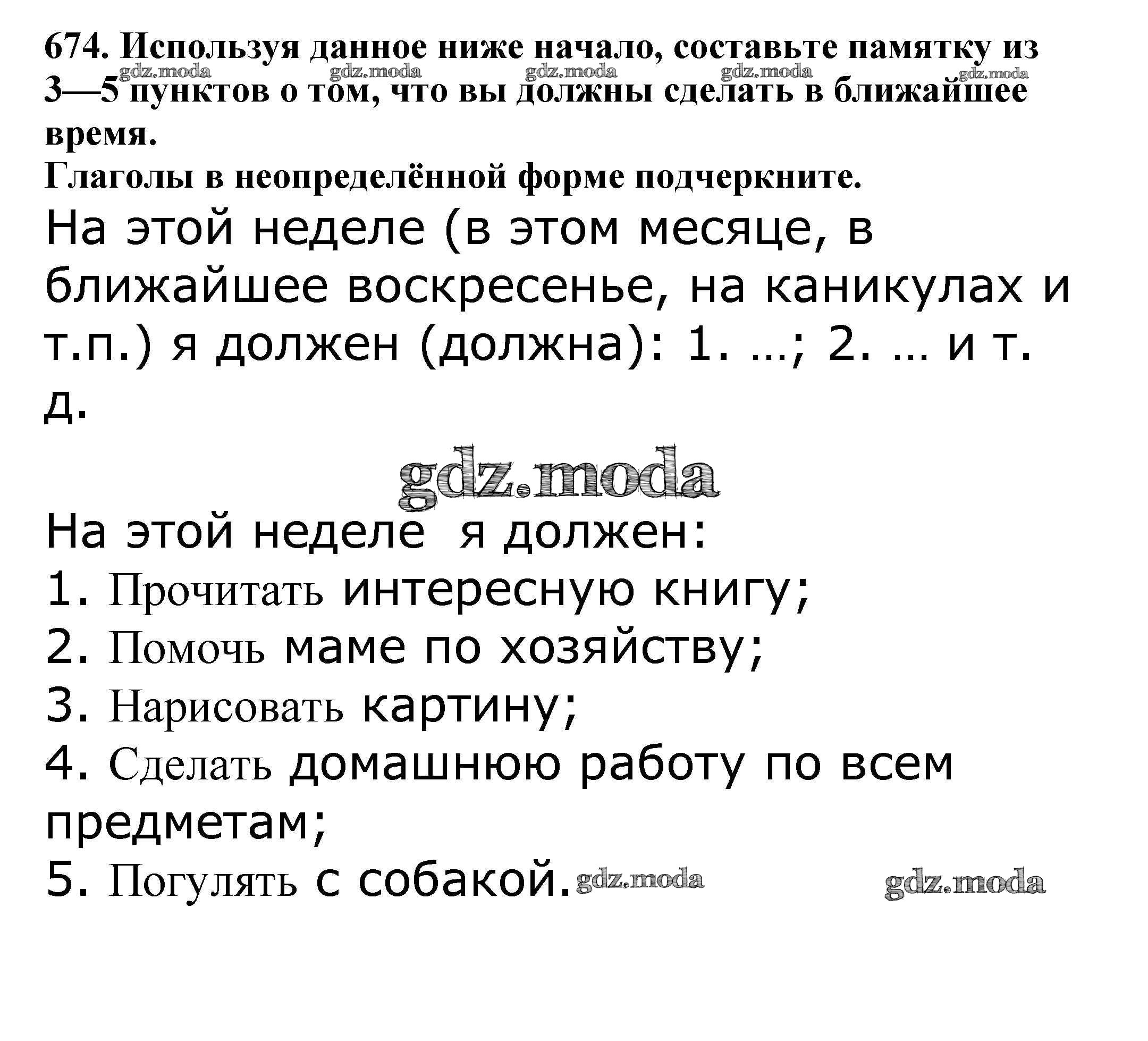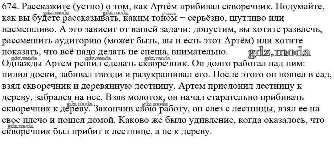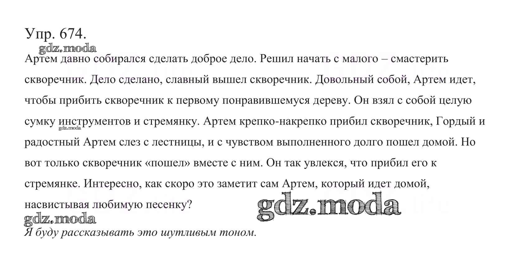 ОТВЕТ на задание № 674 Учебник по Русскому языку 5 класс Баранов