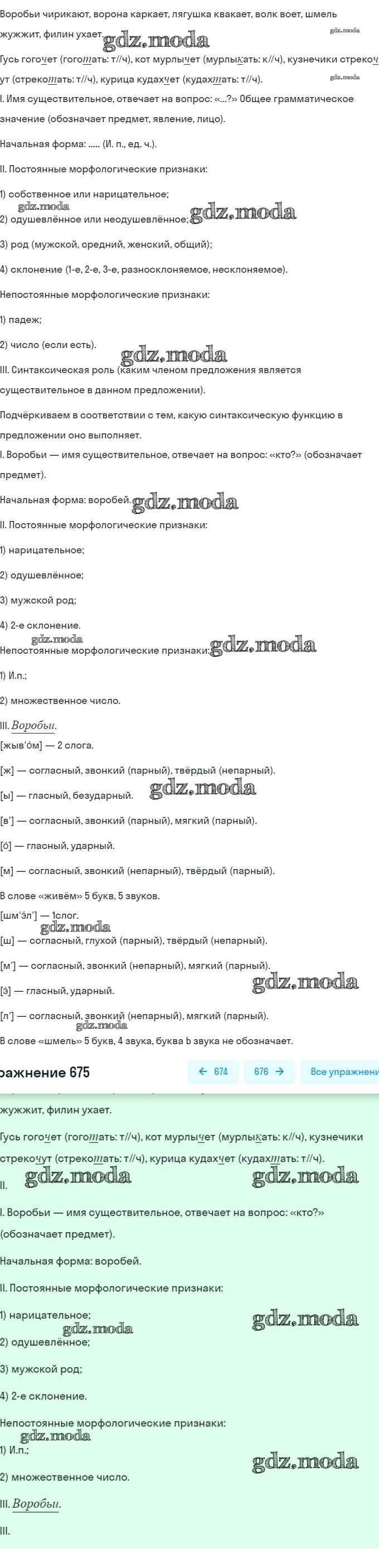 ОТВЕТ на задание № 675 Учебник по Русскому языку 5 класс Баранов