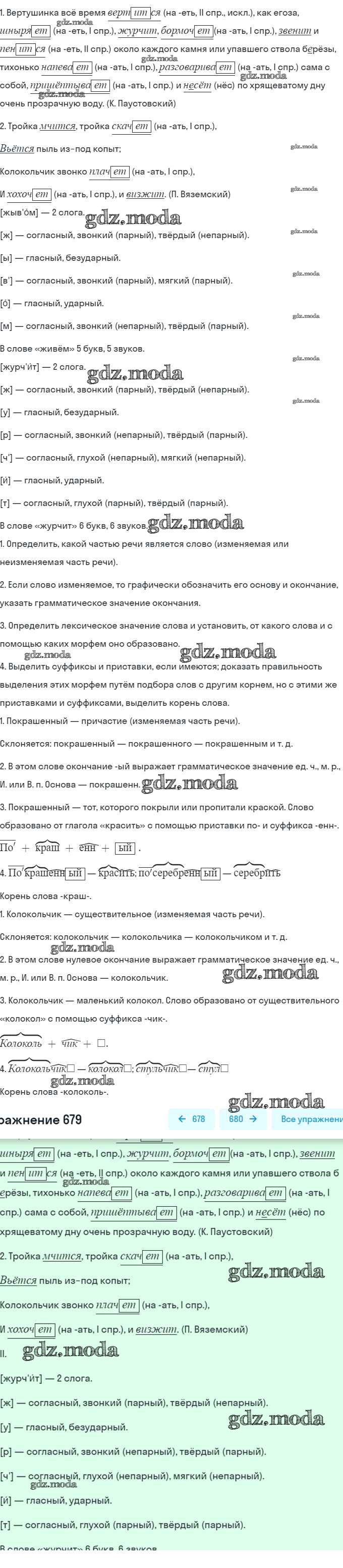 ОТВЕТ на задание № 679 Учебник по Русскому языку 5 класс Баранов
