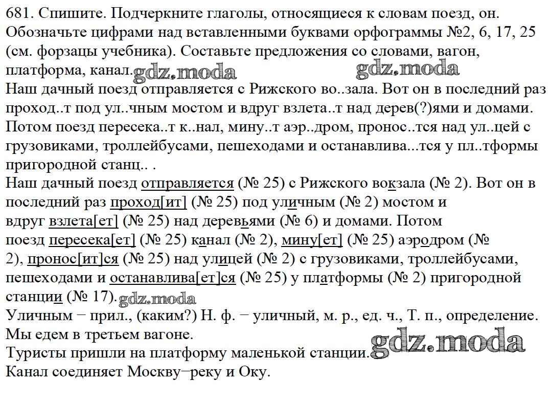 ОТВЕТ на задание № 681 Учебник по Русскому языку 5 класс Баранов