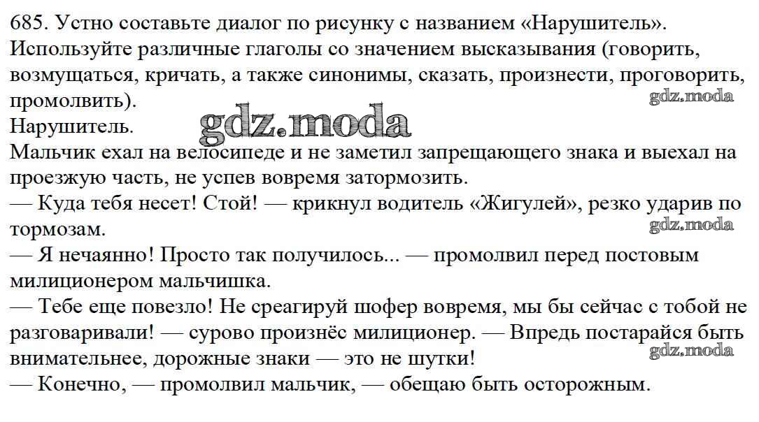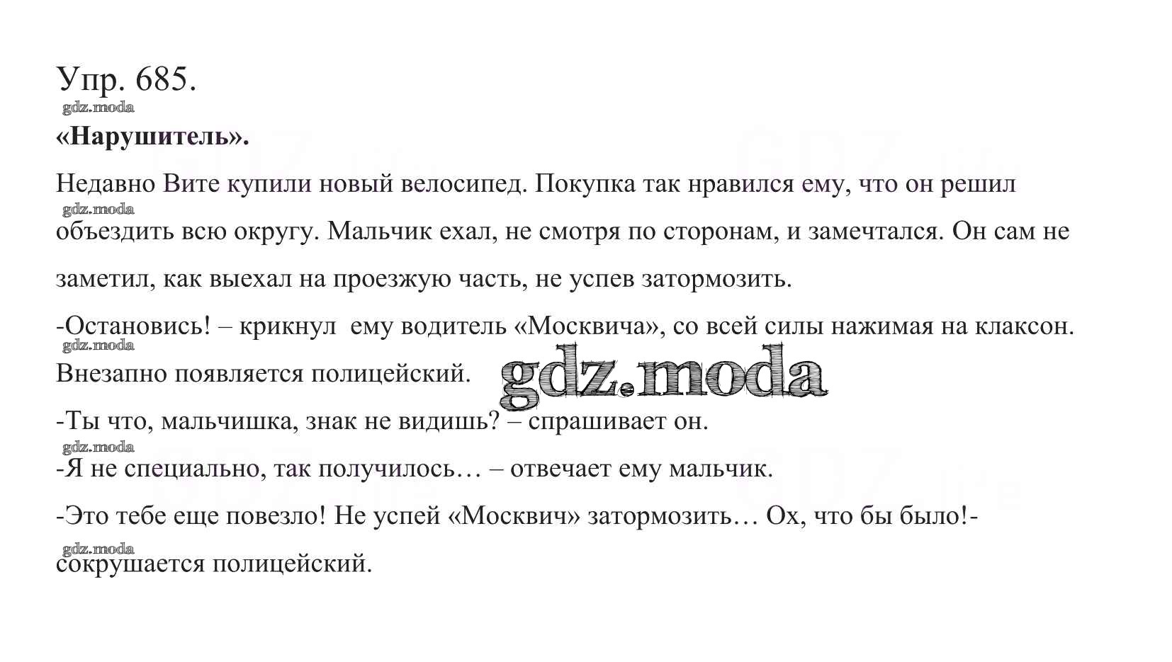 ОТВЕТ на задание № 685 Учебник по Русскому языку 5 класс Баранов