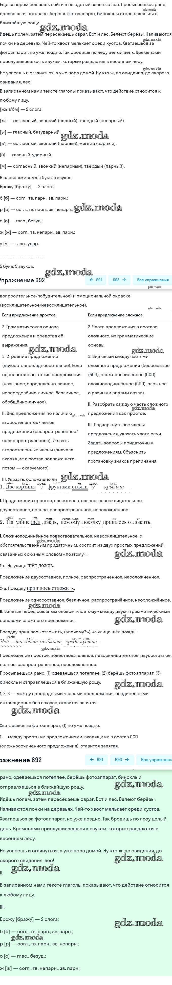 ГДЗ решение к заданию № 692 Русский язык 5 класс Ладыженская Т.А. Просвещение, Просвещение 2016, 2019 Часть 1, Часть 2 ФГОС бесплатно на гдз.мода!