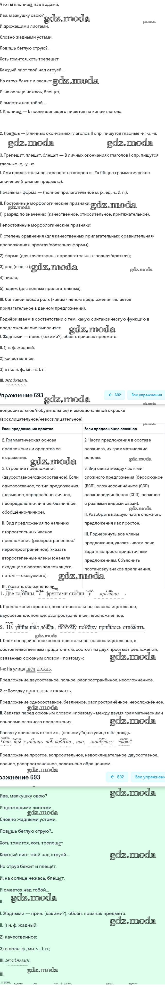 ОТВЕТ на задание № 693 Учебник по Русскому языку 5 класс Баранов
