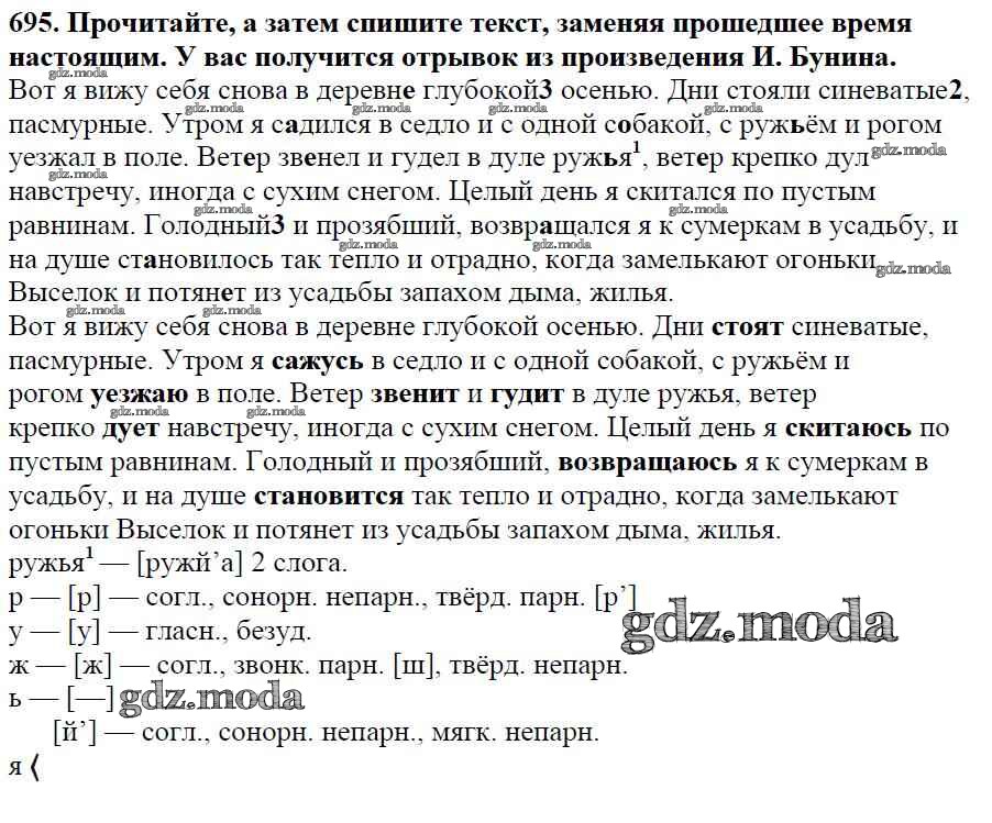ОТВЕТ на задание № 695 Учебник по Русскому языку 5 класс Баранов