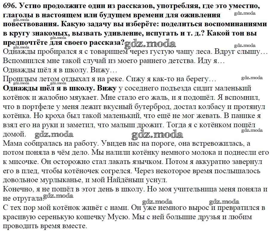 ОТВЕТ на задание № 696 Учебник по Русскому языку 5 класс Баранов