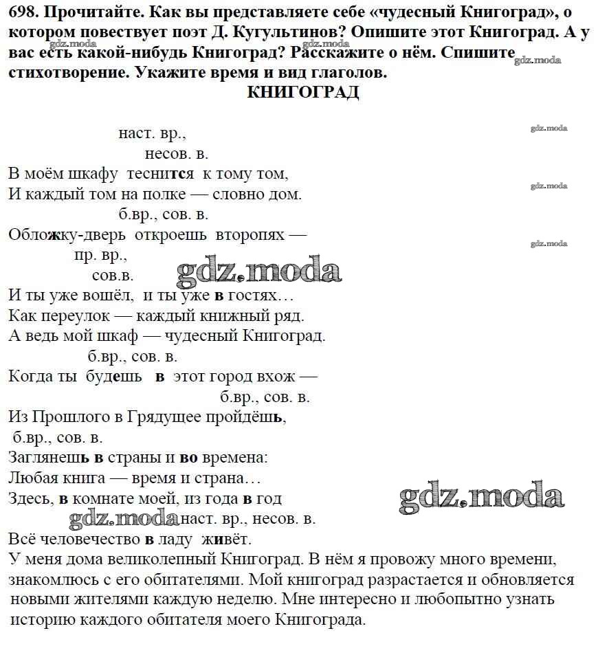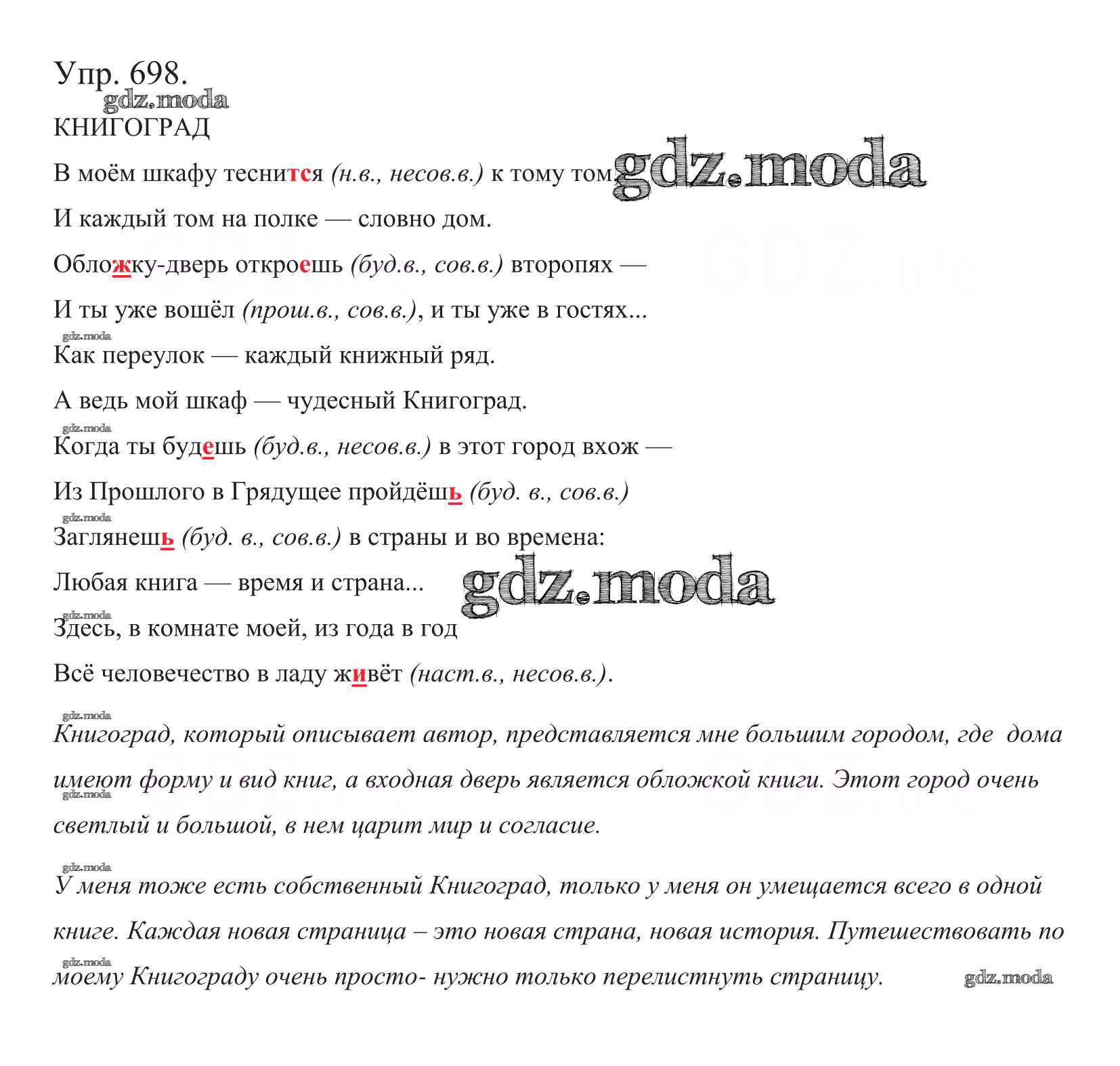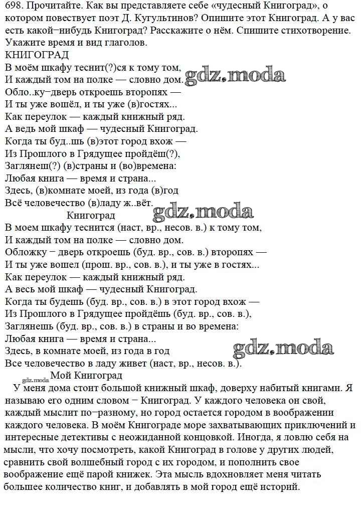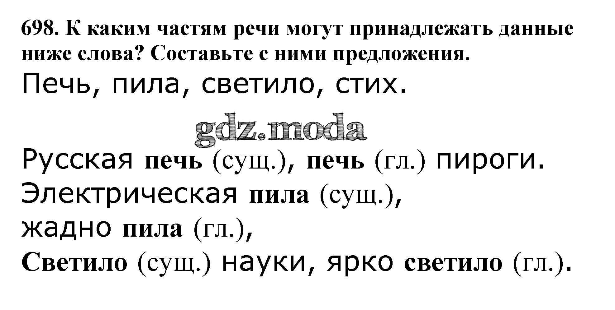 ОТВЕТ на задание № 698 Учебник по Русскому языку 5 класс Баранов