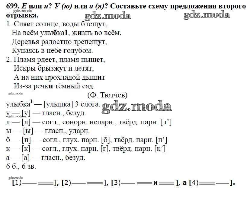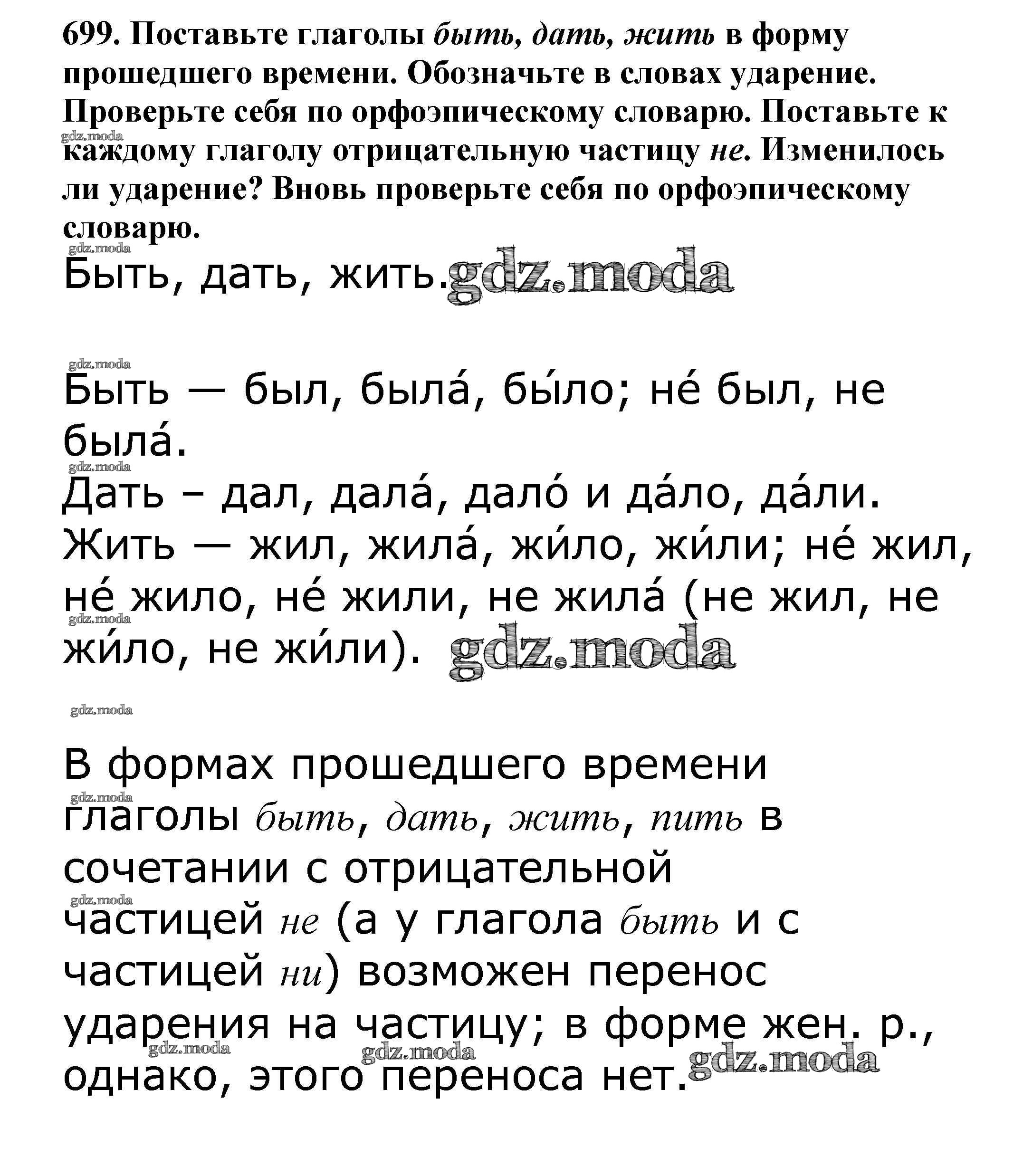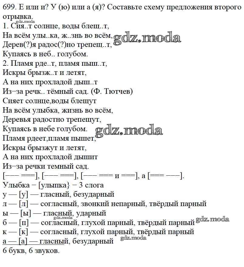 ОТВЕТ на задание № 699 Учебник по Русскому языку 5 класс Баранов
