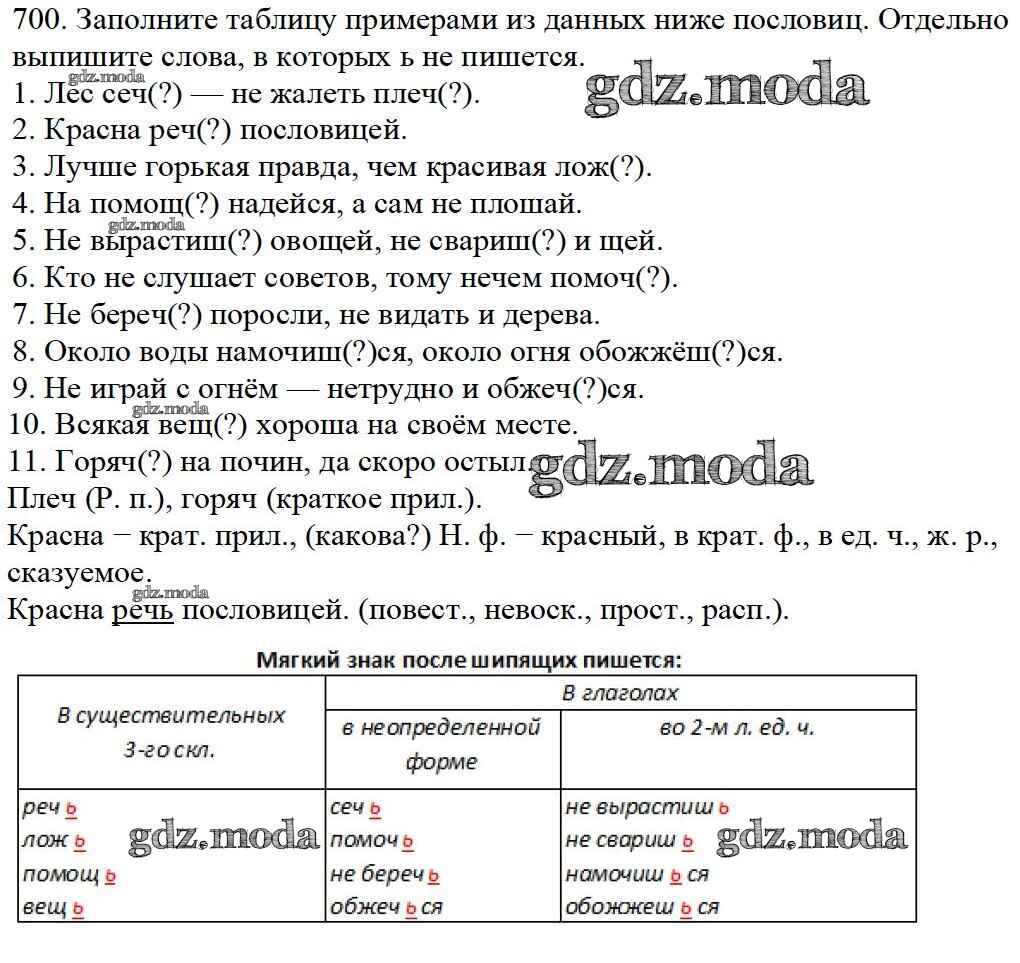 ОТВЕТ на задание № 700 Учебник по Русскому языку 5 класс Баранов