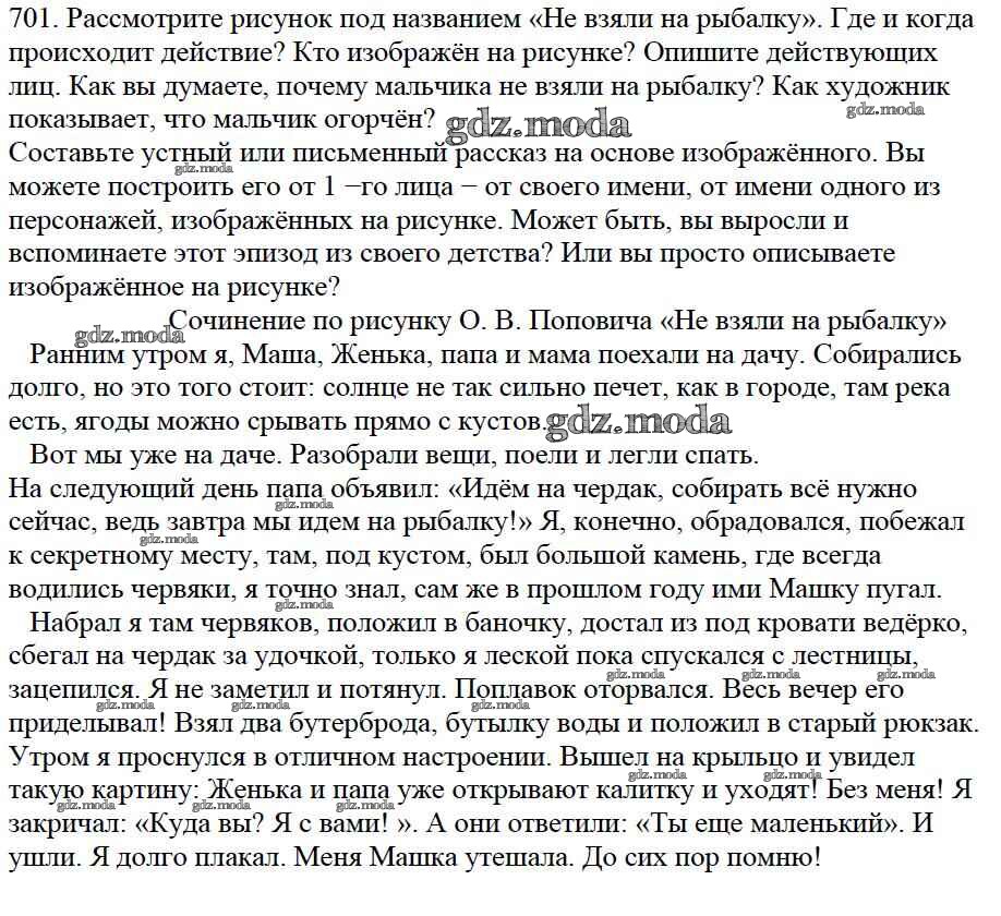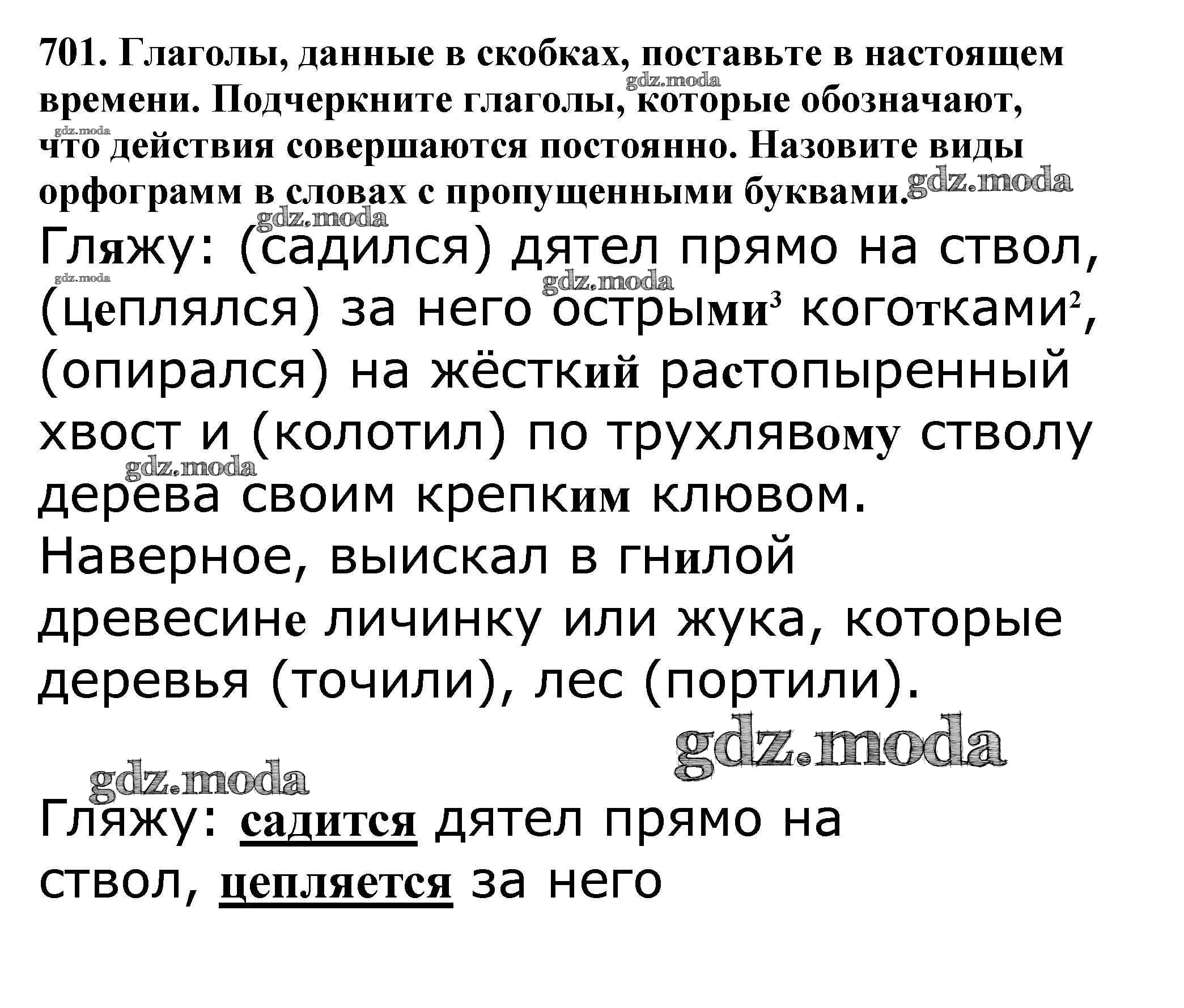 ОТВЕТ на задание № 701 Учебник по Русскому языку 5 класс Баранов