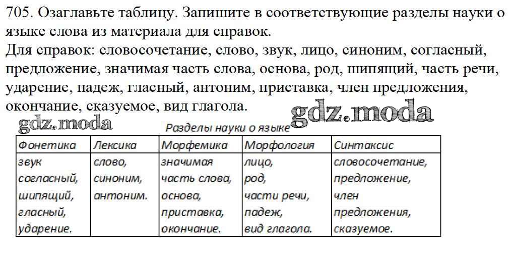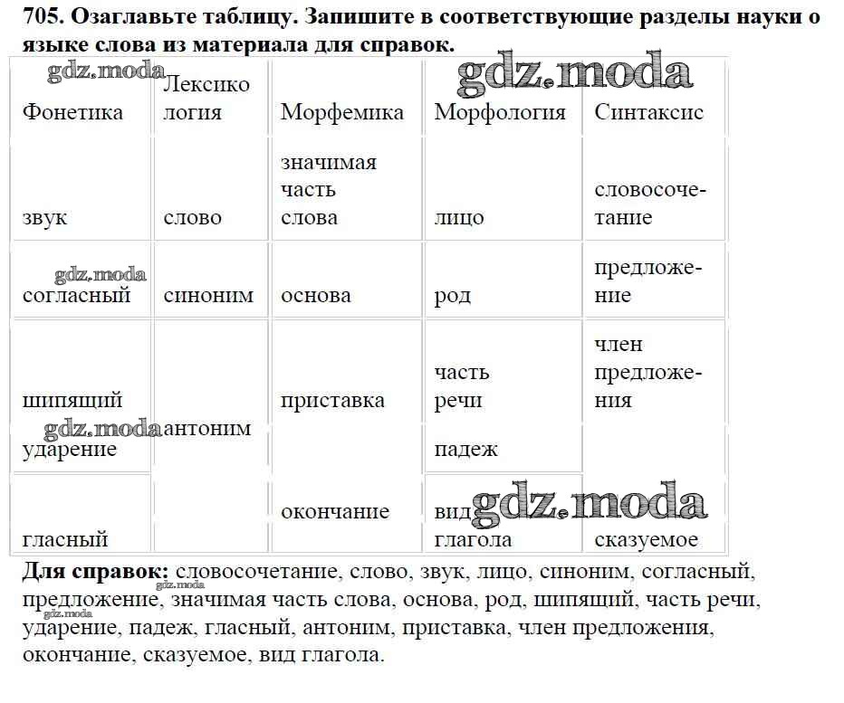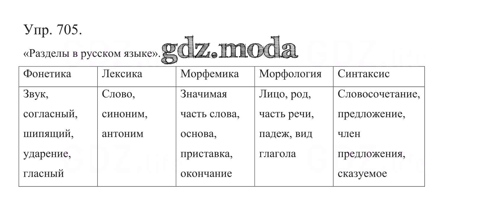 ОТВЕТ на задание № 705 Учебник по Русскому языку 5 класс Баранов