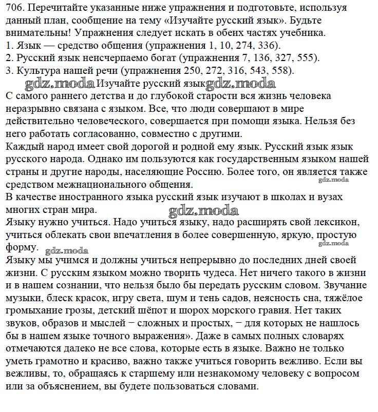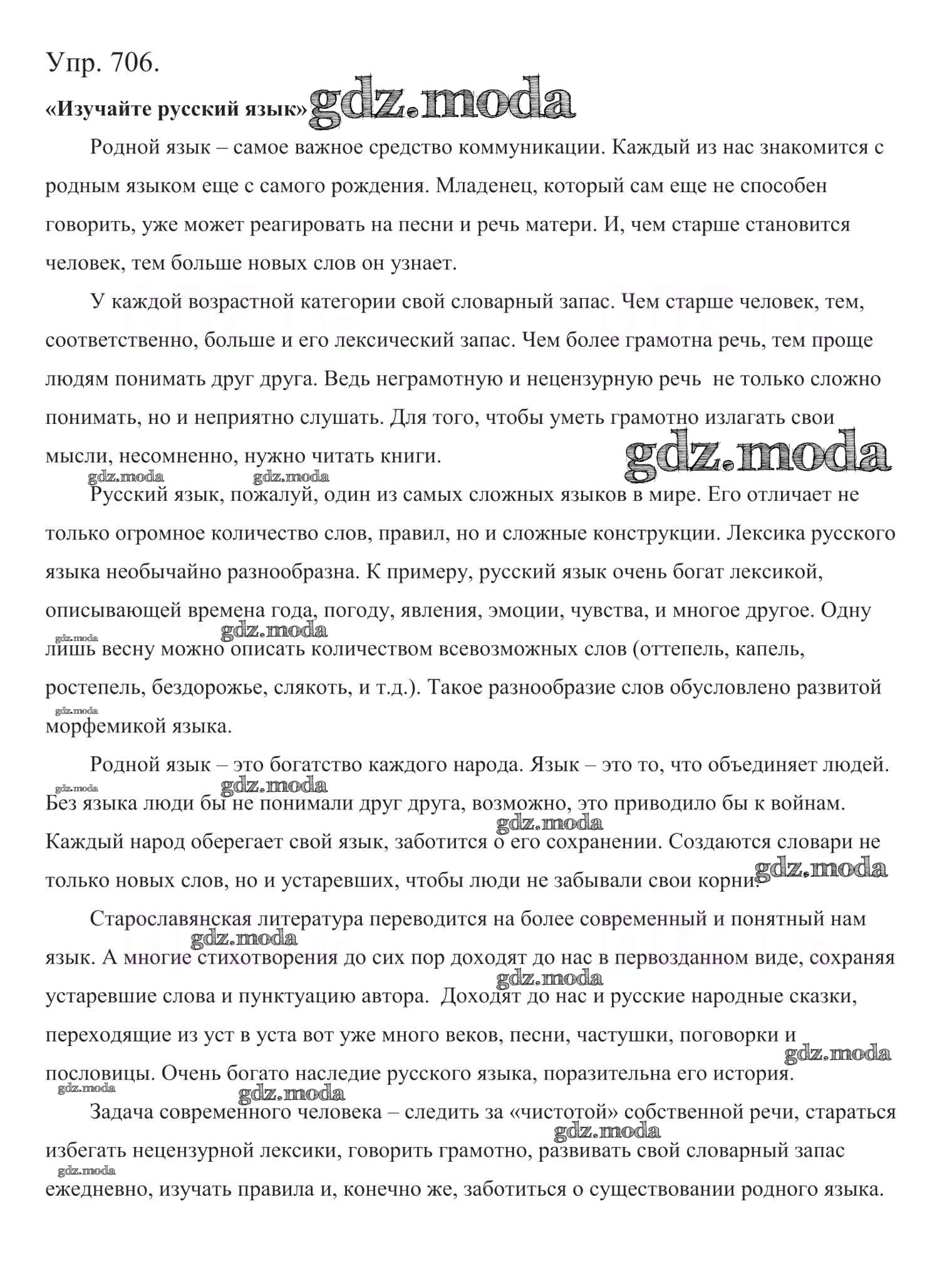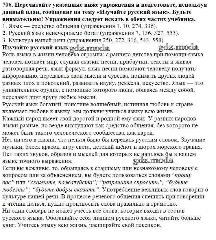 ОТВЕТ на задание № 706 Учебник по Русскому языку 5 класс Баранов