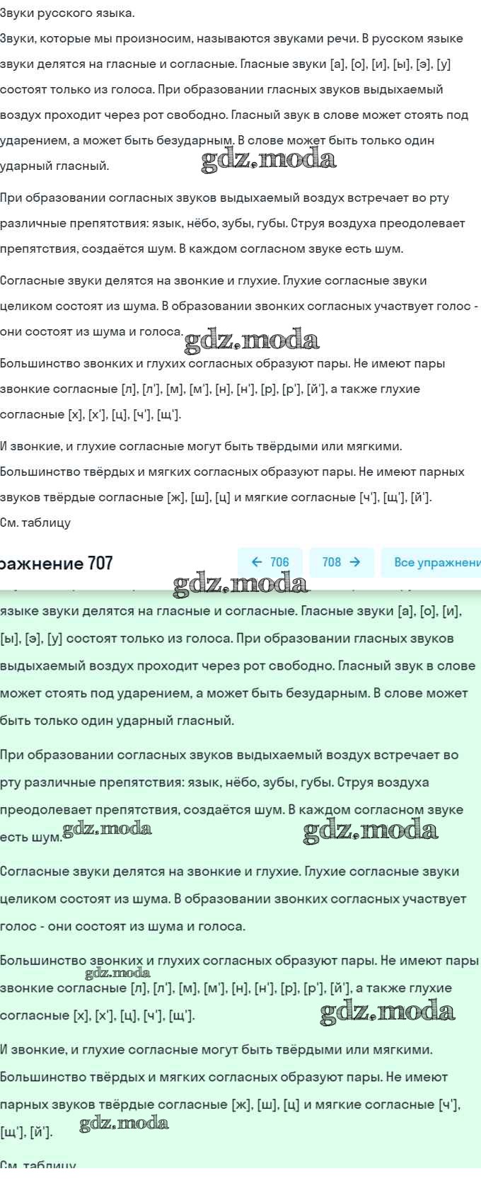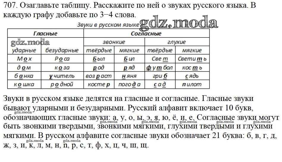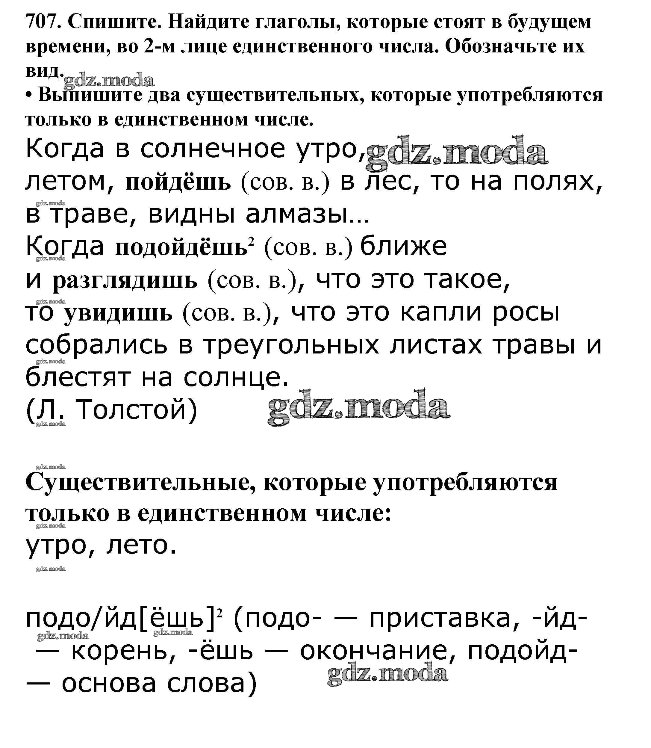 ОТВЕТ на задание № 707 Учебник по Русскому языку 5 класс Баранов