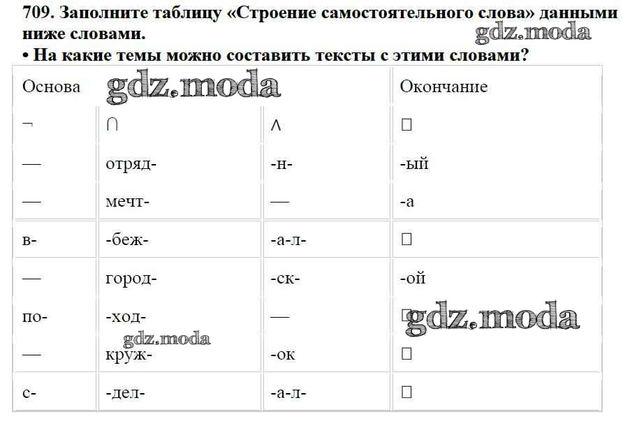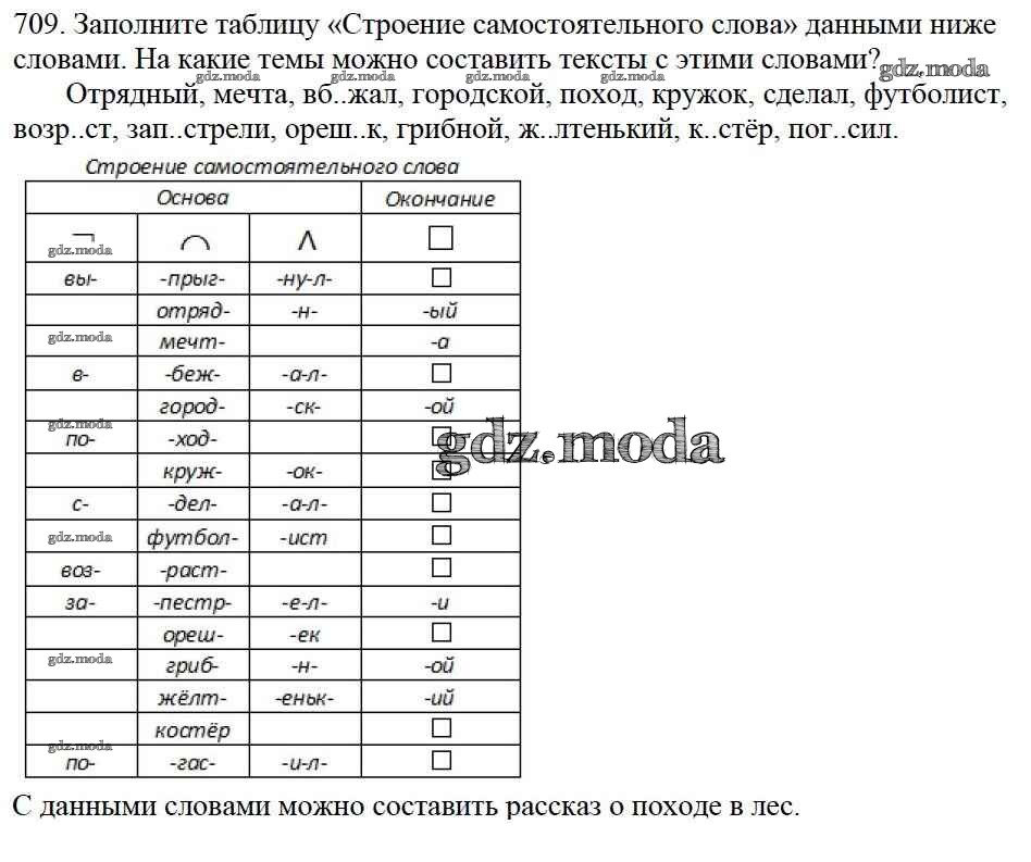 ОТВЕТ на задание № 709 Учебник по Русскому языку 5 класс Баранов