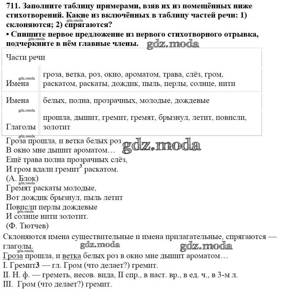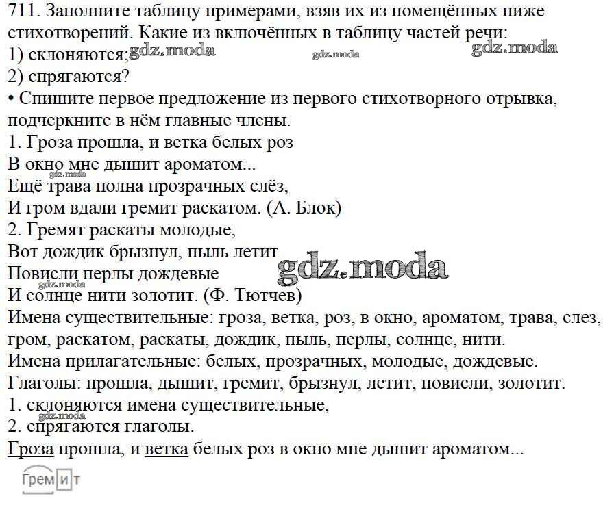 ОТВЕТ на задание № 711 Учебник по Русскому языку 5 класс Баранов