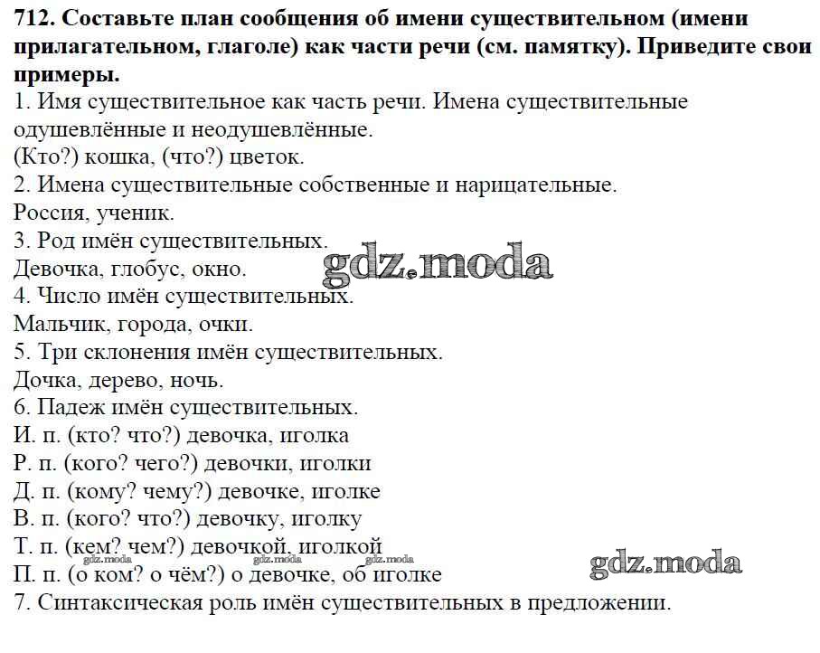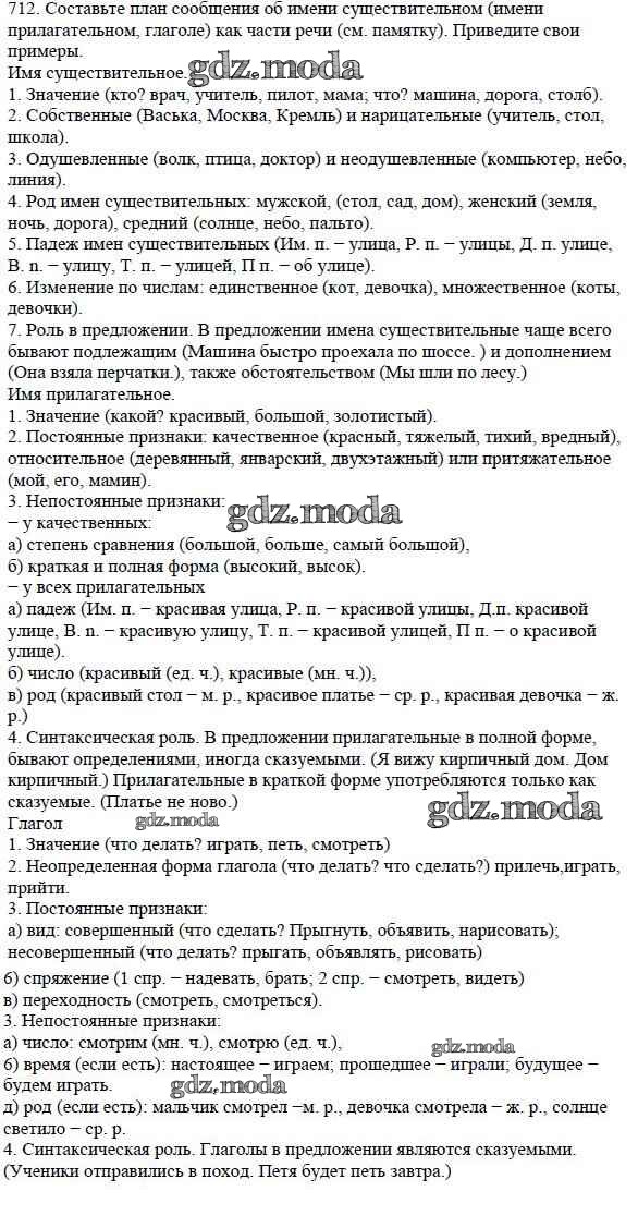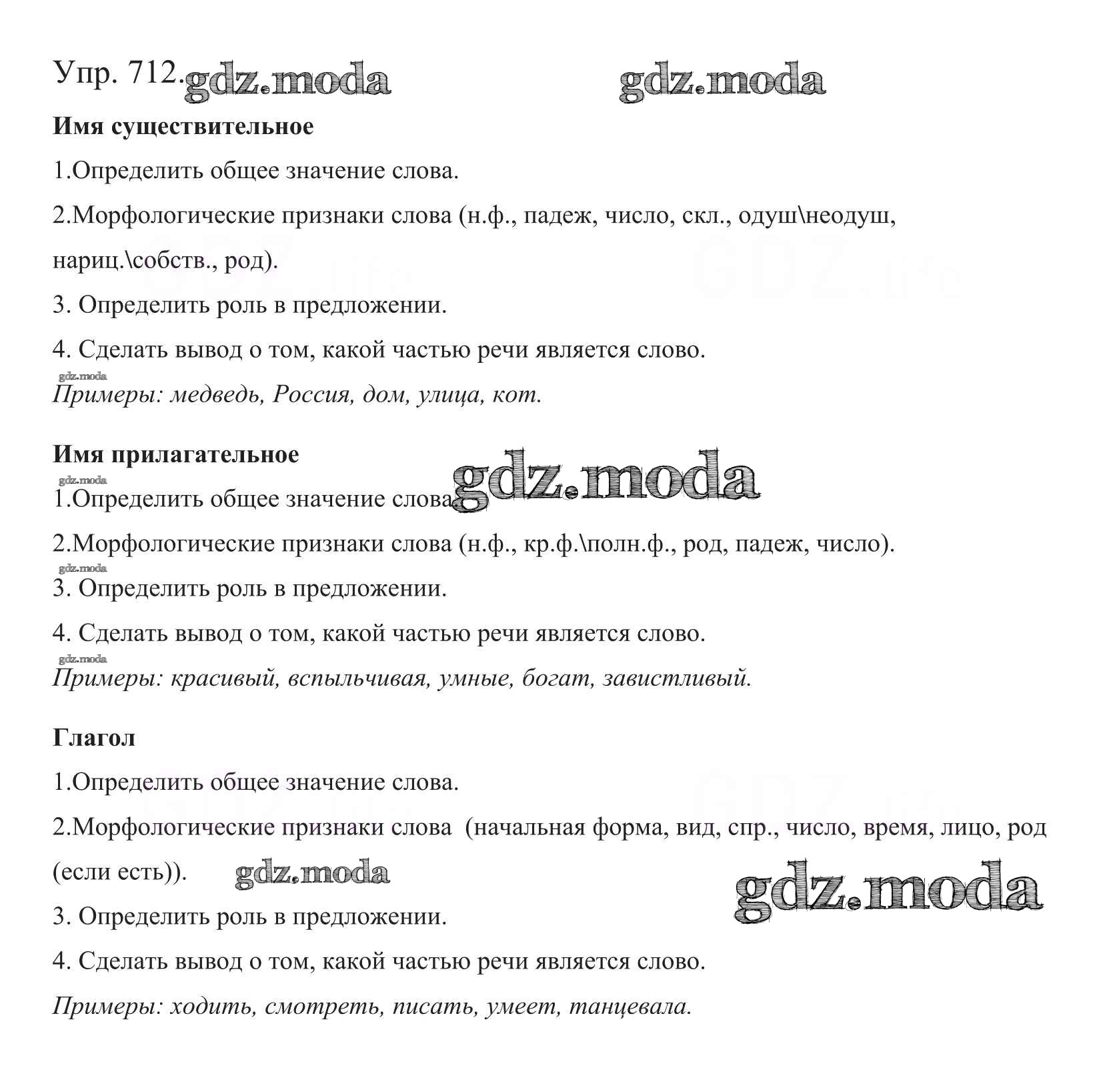 ОТВЕТ на задание № 712 Учебник по Русскому языку 5 класс Баранов