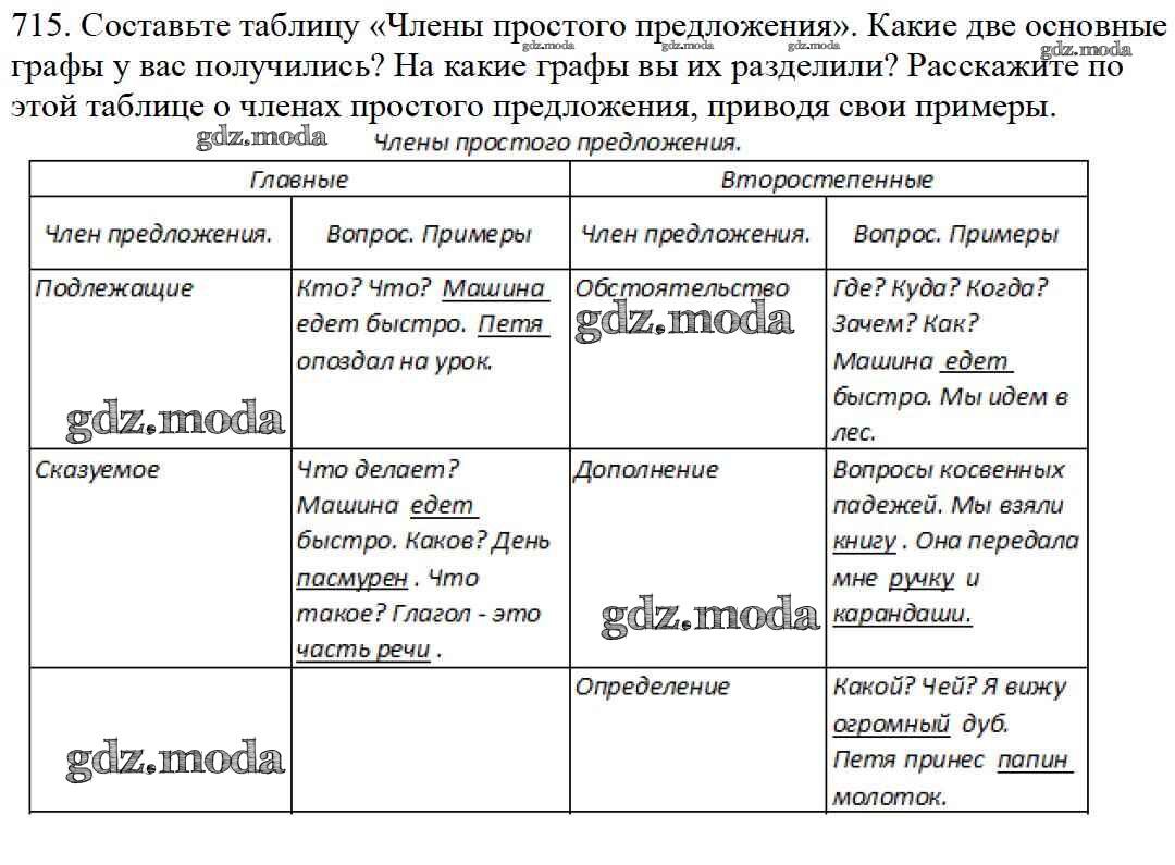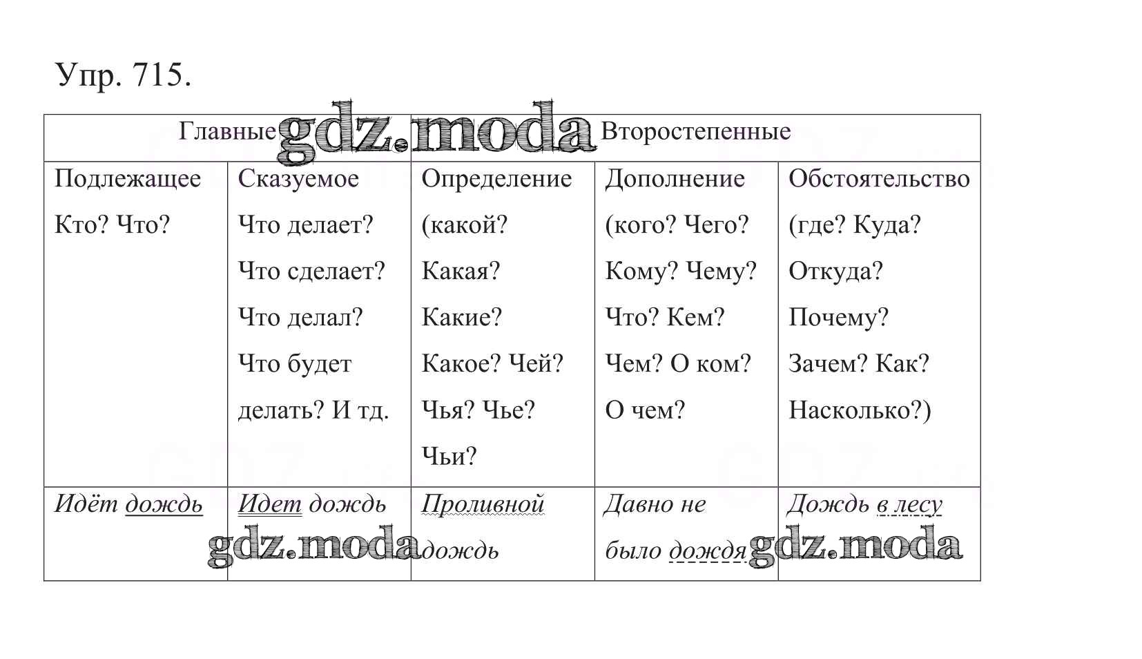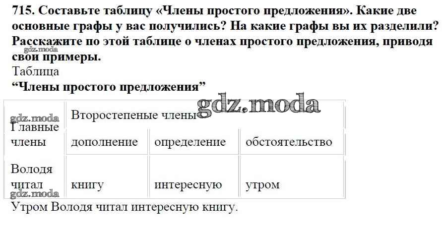 ОТВЕТ на задание № 715 Учебник по Русскому языку 5 класс Баранов