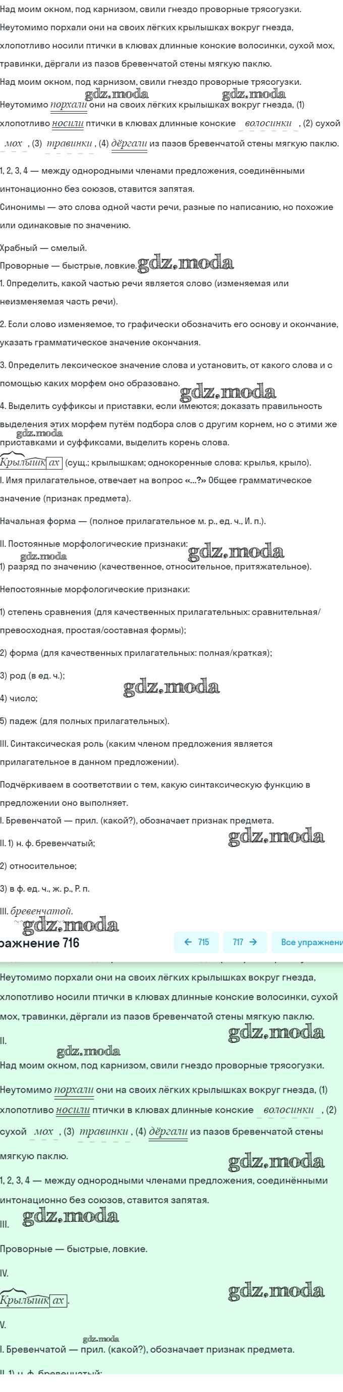 ОТВЕТ на задание № 716 Учебник по Русскому языку 5 класс Баранов