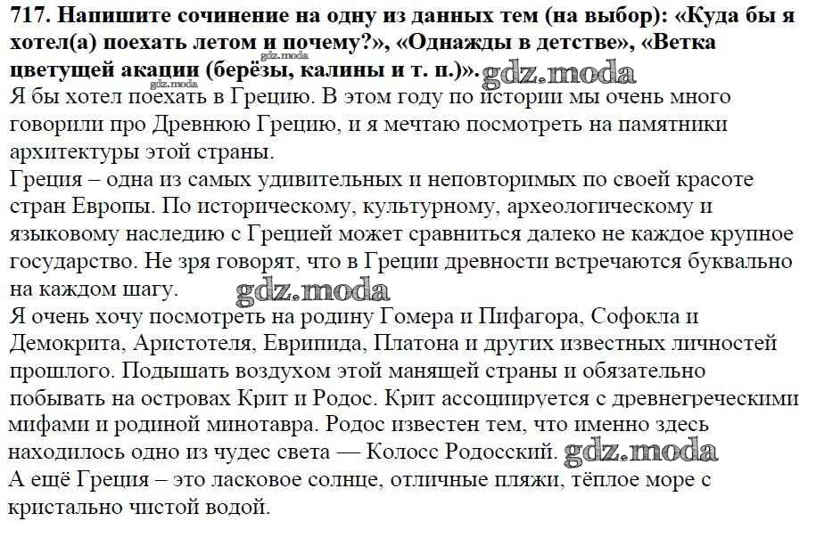 ОТВЕТ на задание № 717 Учебник по Русскому языку 5 класс Баранов