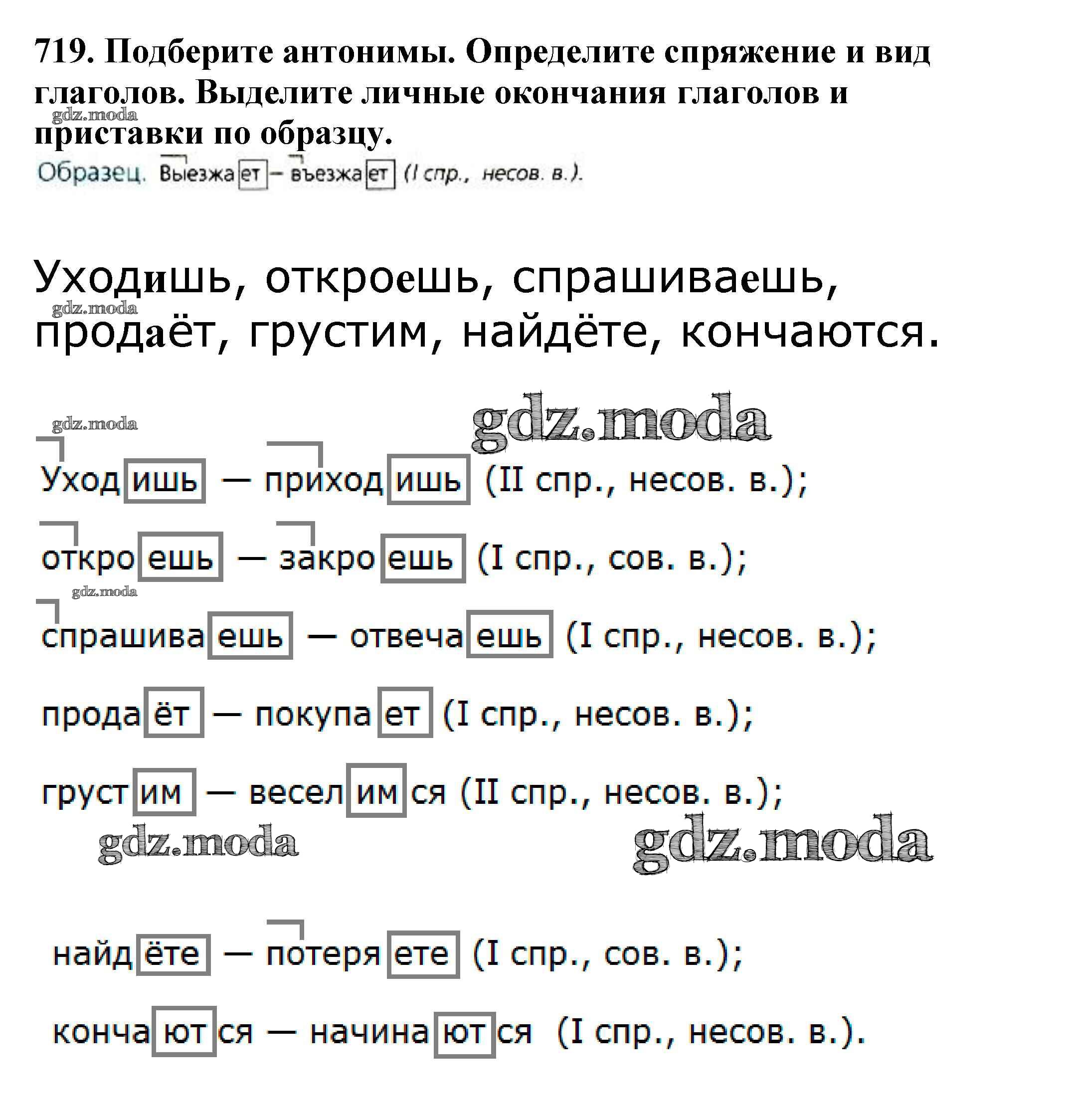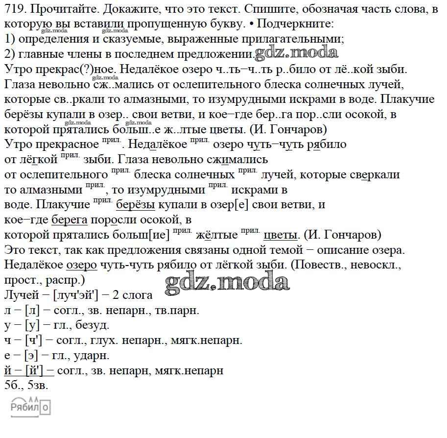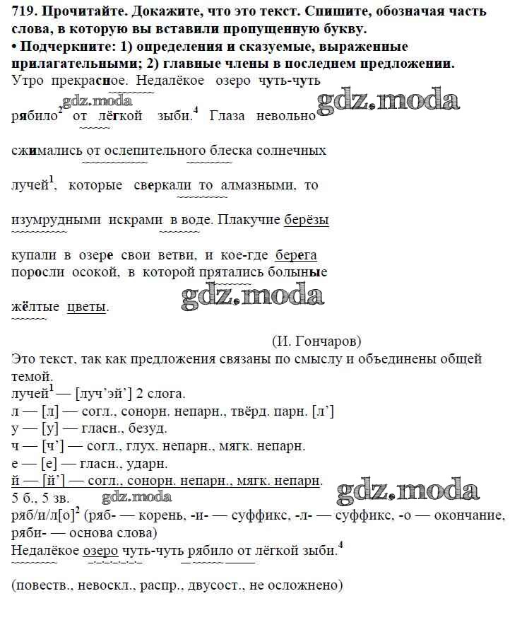 ОТВЕТ на задание № 719 Учебник по Русскому языку 5 класс Баранов