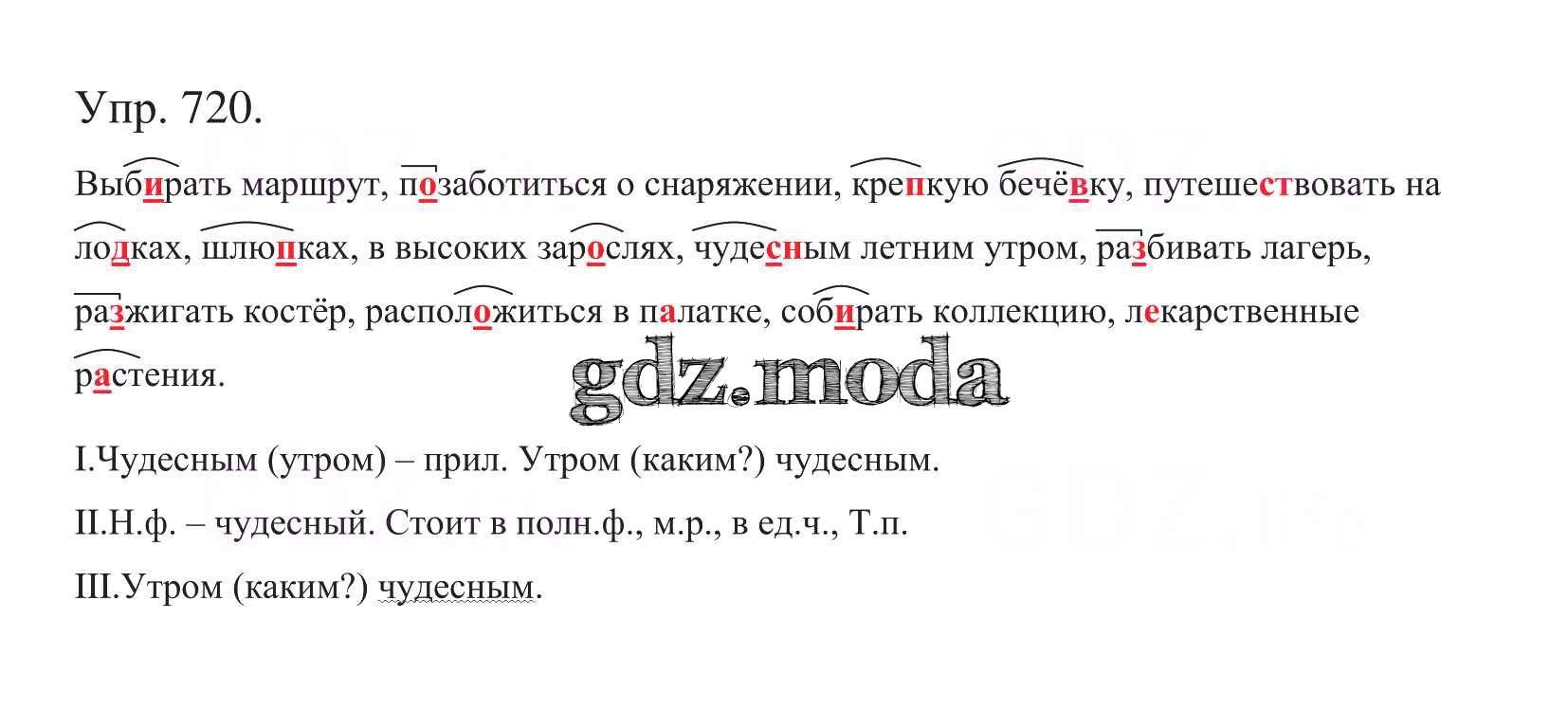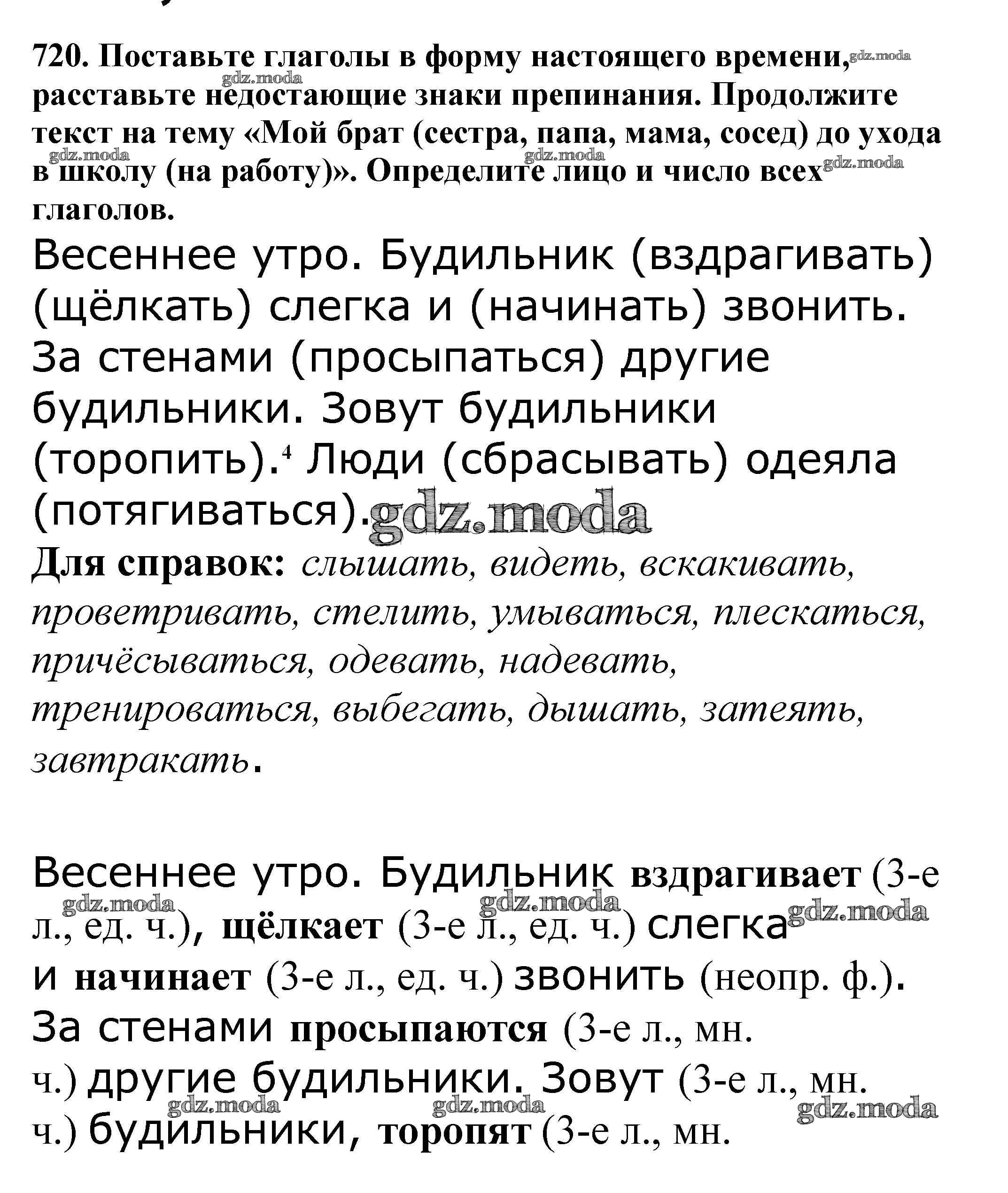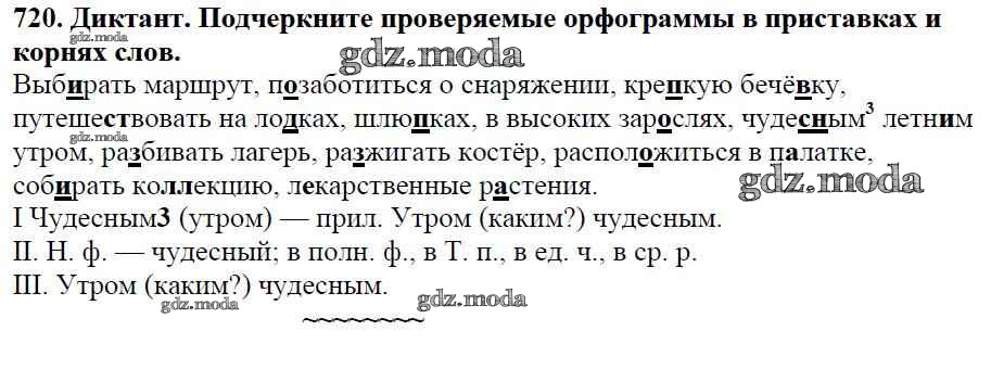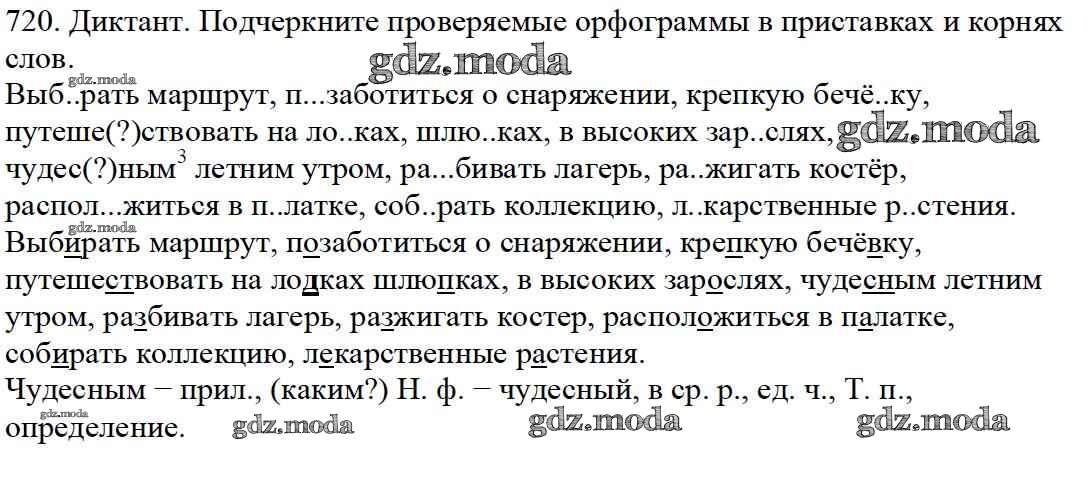 ОТВЕТ на задание № 720 Учебник по Русскому языку 5 класс Баранов