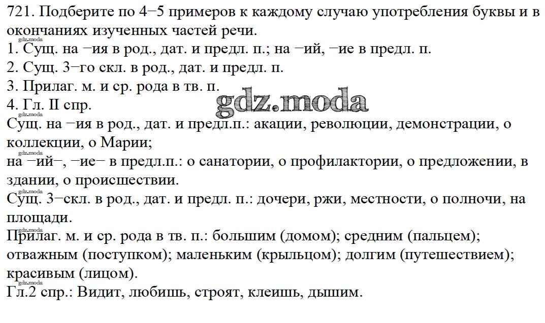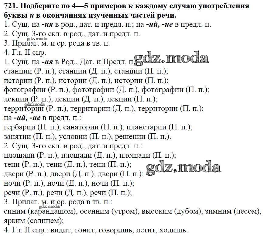 ОТВЕТ на задание № 721 Учебник по Русскому языку 5 класс Баранов