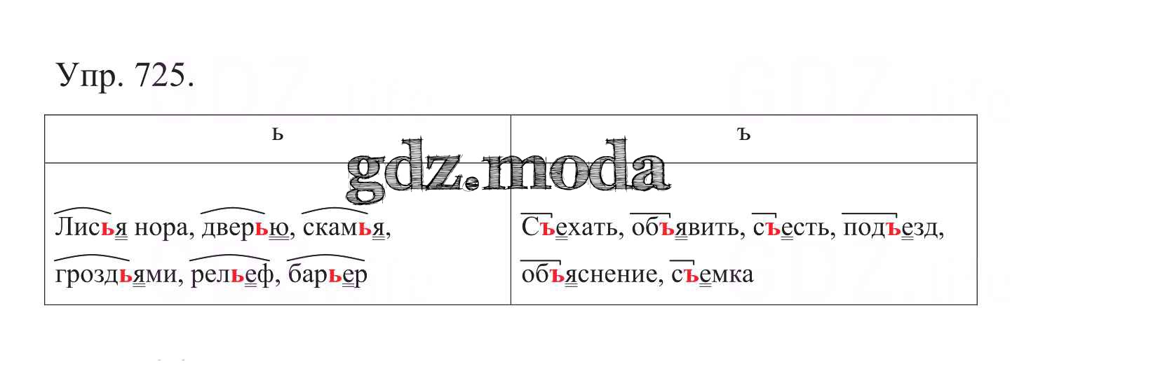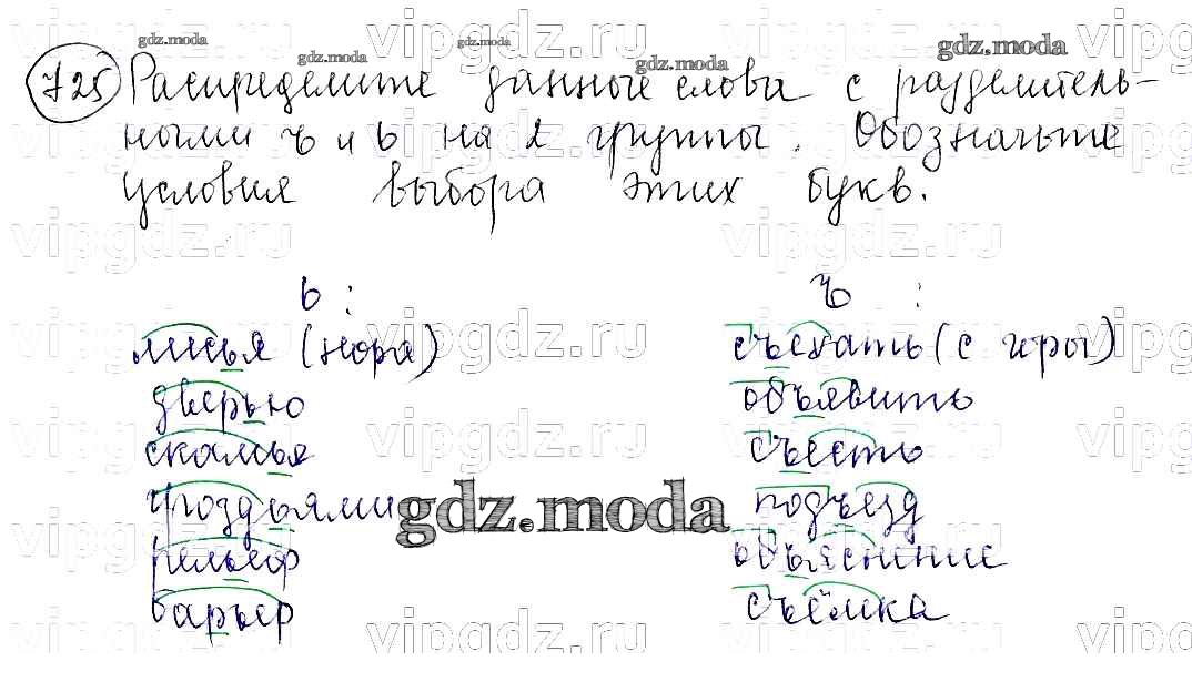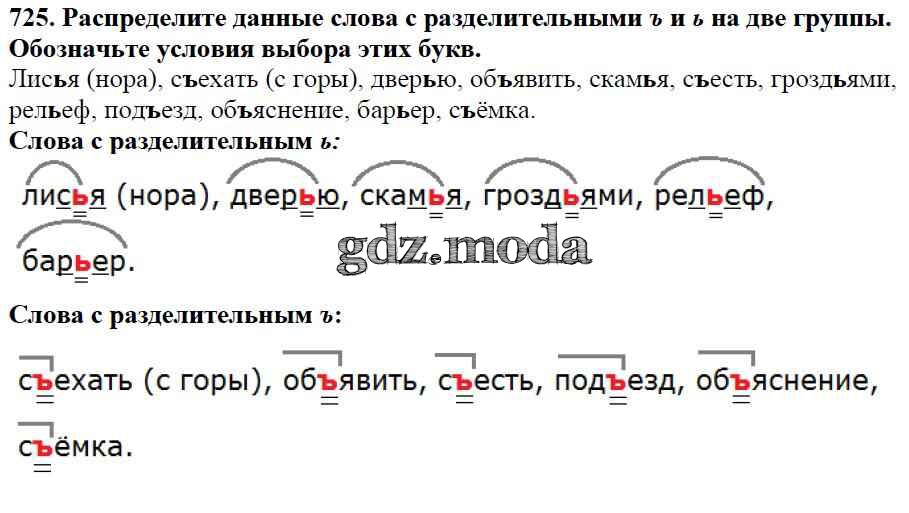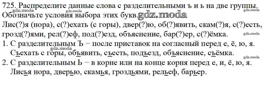 ОТВЕТ на задание № 725 Учебник по Русскому языку 5 класс Баранов