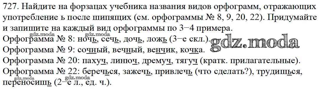 ОТВЕТ на задание № 727 Учебник по Русскому языку 5 класс Баранов