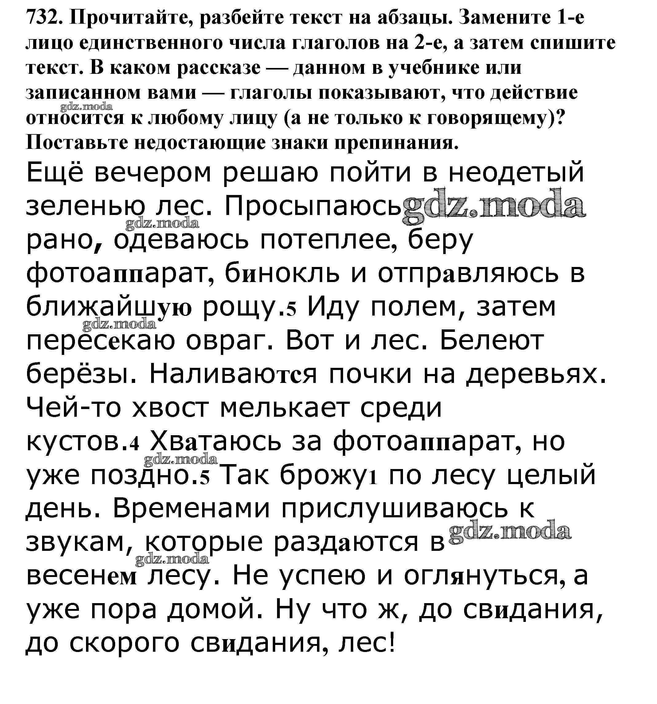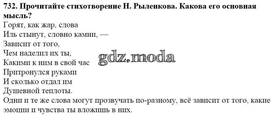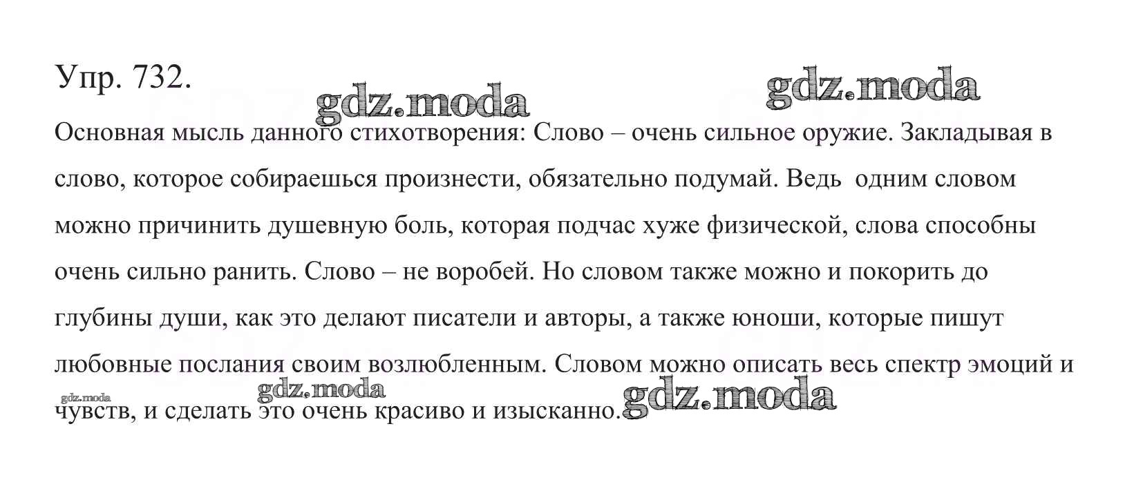 ОТВЕТ на задание № 732 Учебник по Русскому языку 5 класс Баранов