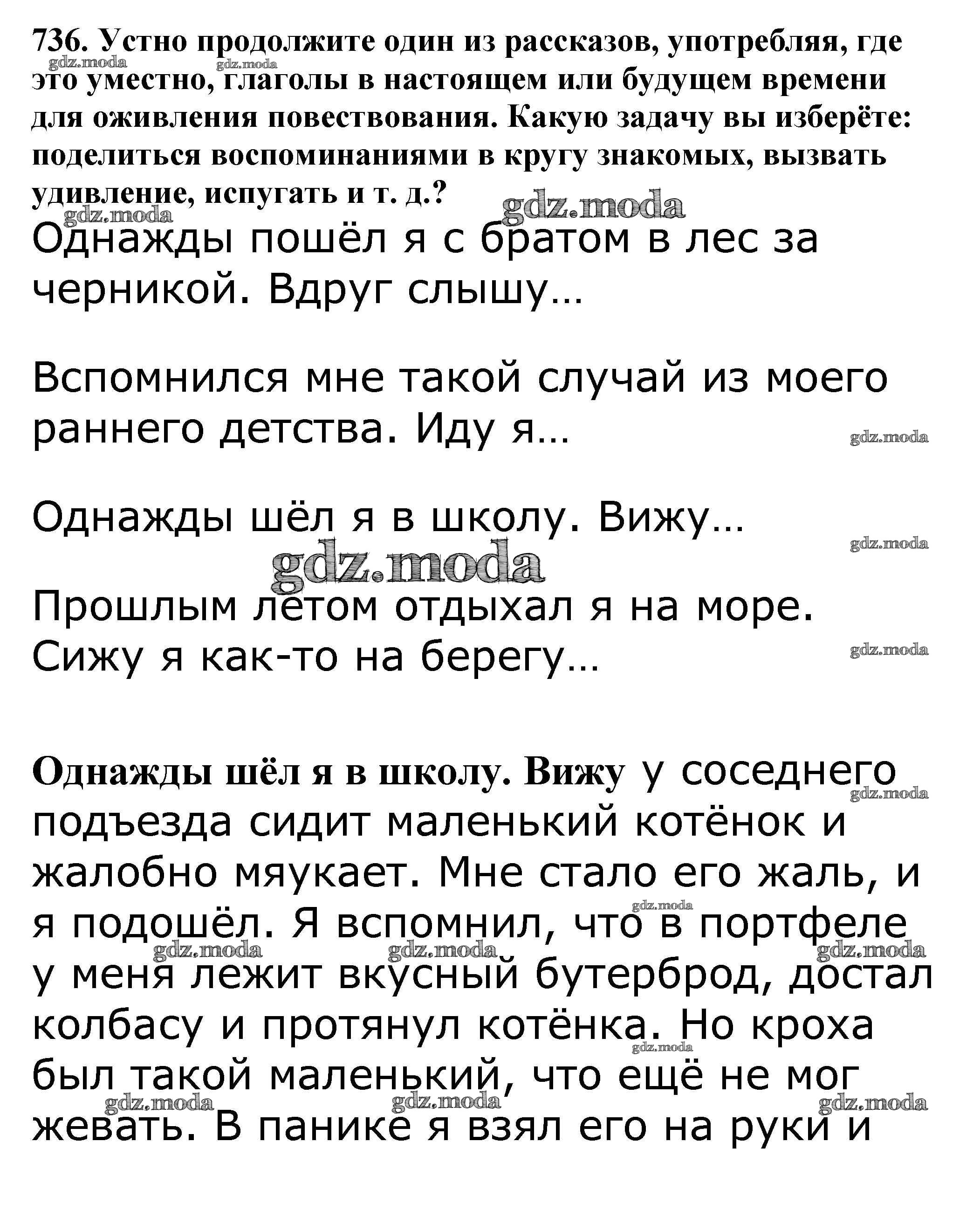 ГДЗ решение к заданию № 736 Русский язык 5 класс Ладыженская Т.А. Просвещение, Просвещение 2016, 2019 Часть 1, Часть 2 ФГОС бесплатно на гдз.мода!