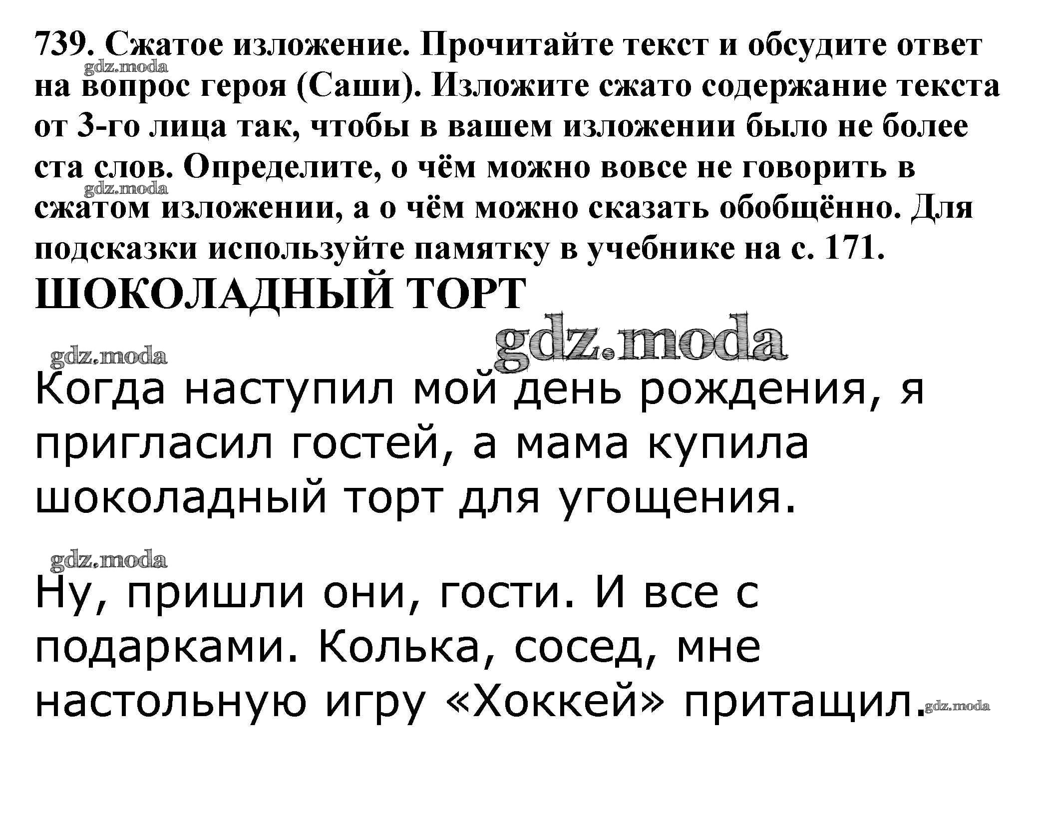 ГДЗ решение к заданию № 739 Русский язык 5 класс Ладыженская Т.А. Просвещение, Просвещение 2016, 2019 Часть 1, Часть 2 ФГОС бесплатно на гдз.мода!