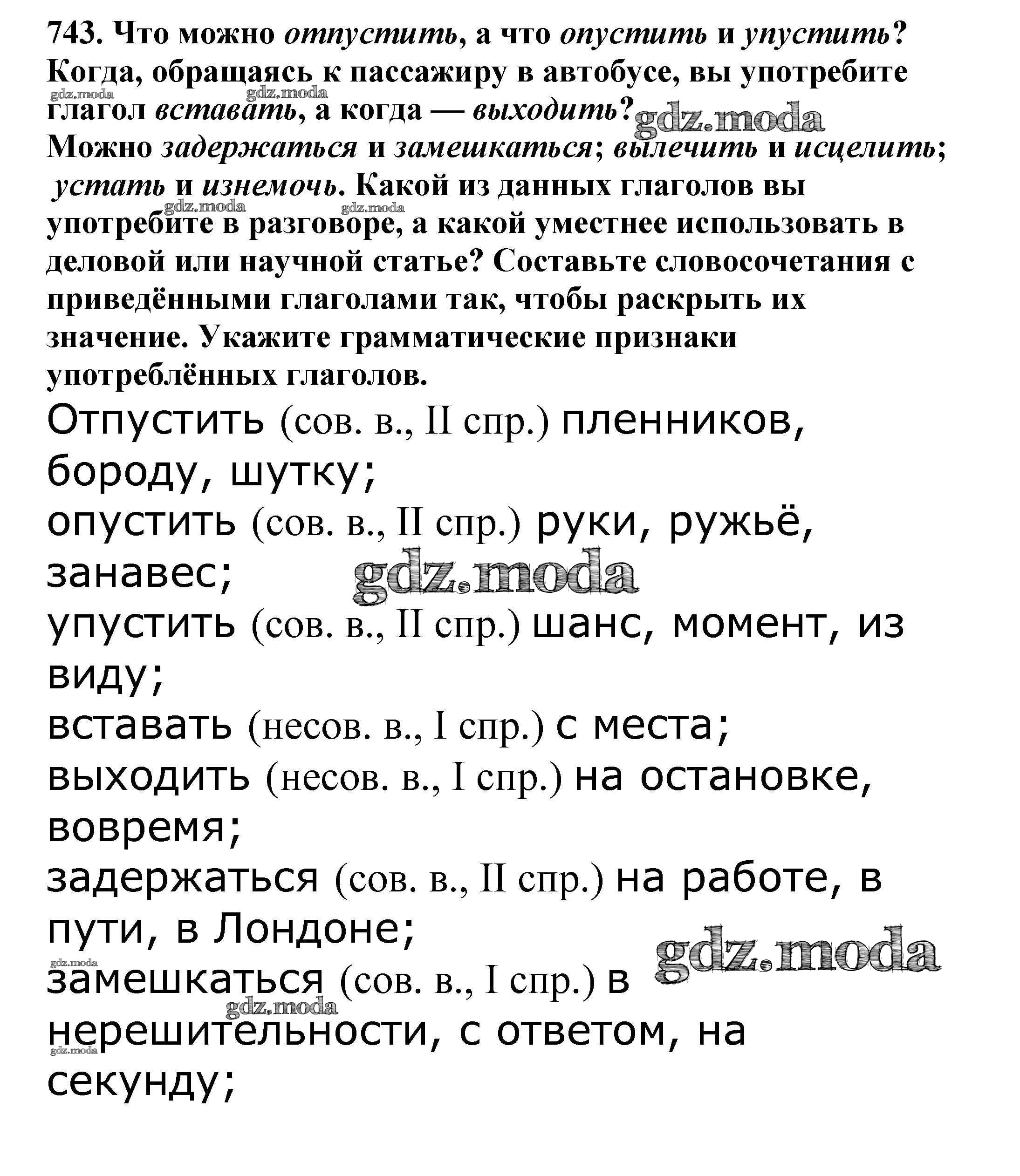ОТВЕТ на задание № 743 Учебник по Русскому языку 5 класс Баранов