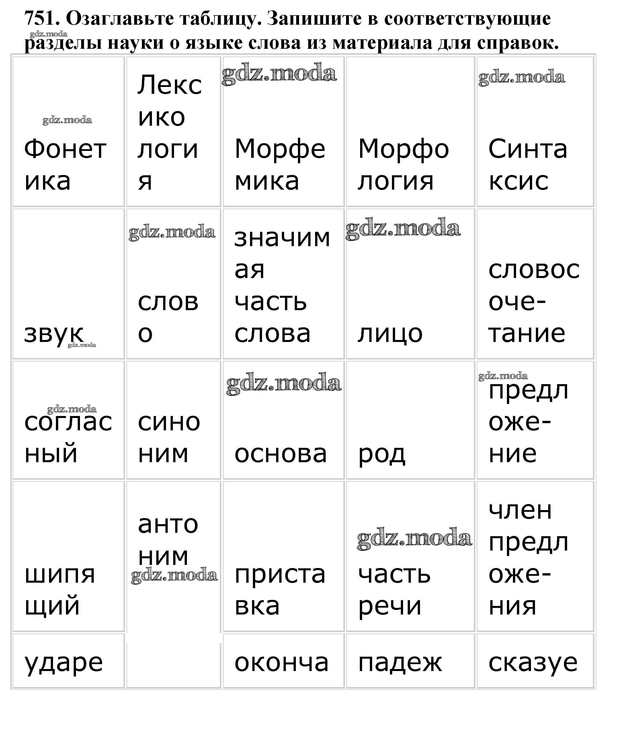 ГДЗ решение к заданию № 751 Русский язык 5 класс Ладыженская Т.А. Просвещение, Просвещение 2016, 2019 Часть 1, Часть 2 ФГОС бесплатно на гдз.мода!