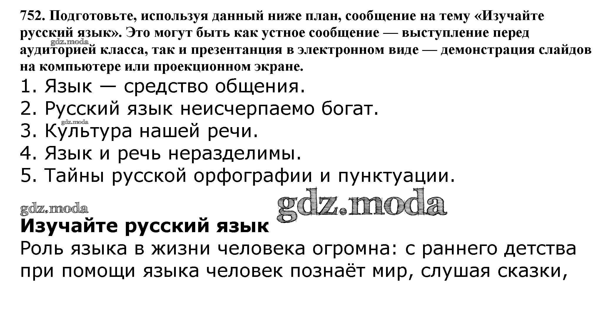 ОТВЕТ на задание № 752 Учебник по Русскому языку 5 класс Баранов