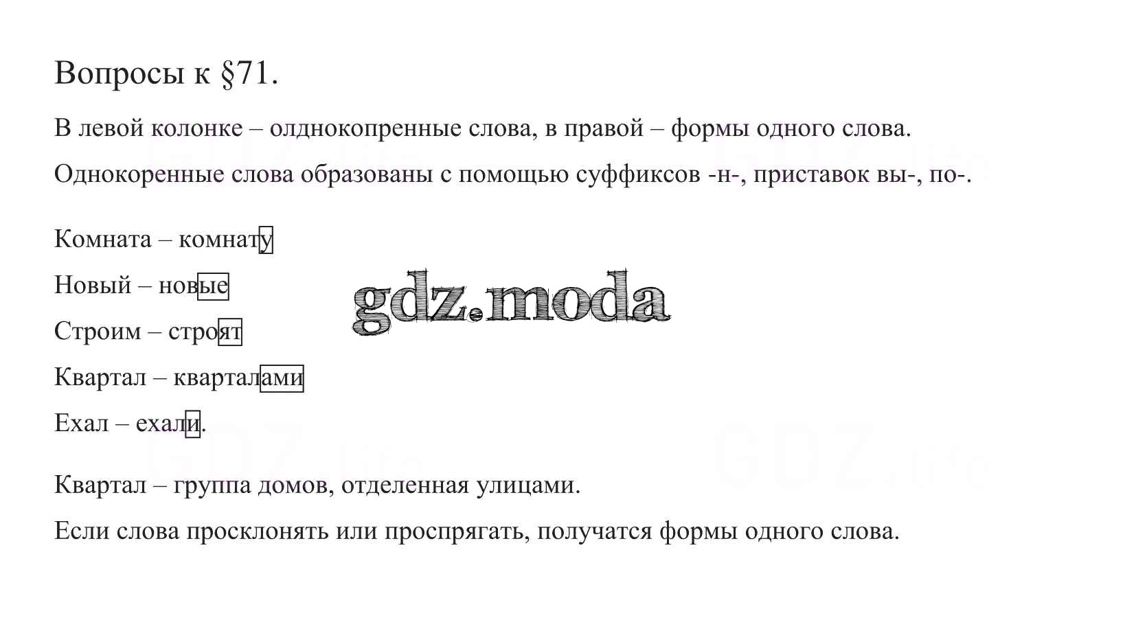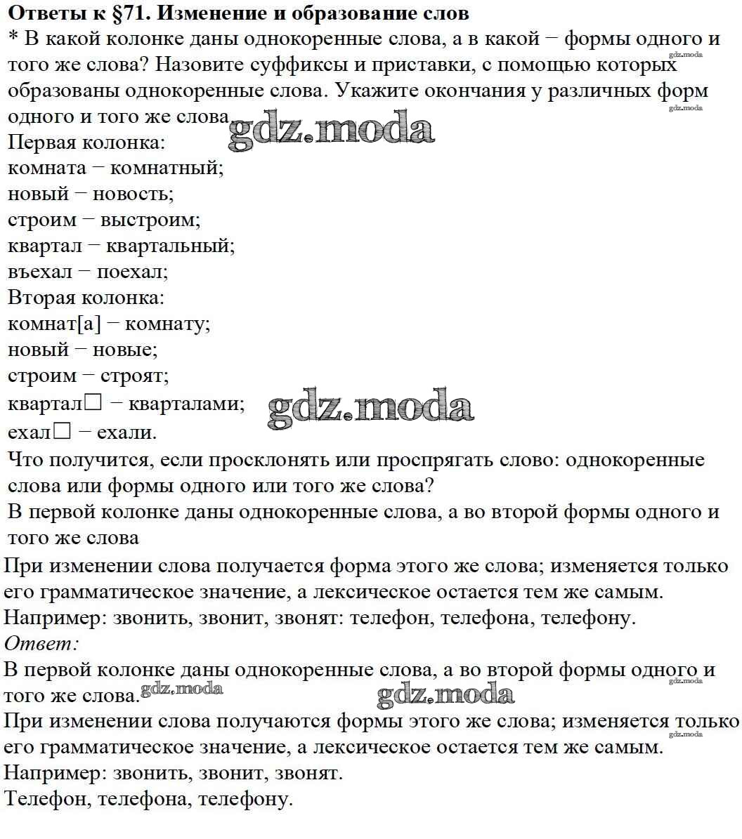 ГДЗ решение к заданию № §71 Русский язык 5 класс Ладыженская Т.А. Просвещение, Просвещение 2016, 2019 Часть 1, Часть 2 ФГОС бесплатно на гдз.мода!