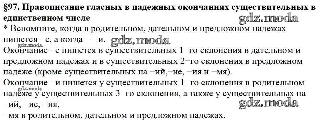 ГДЗ решение к заданию № §97 Русский язык 5 класс Ладыженская Т.А. Просвещение, Просвещение 2016, 2019 Часть 1, Часть 2 ФГОС бесплатно на гдз.мода!