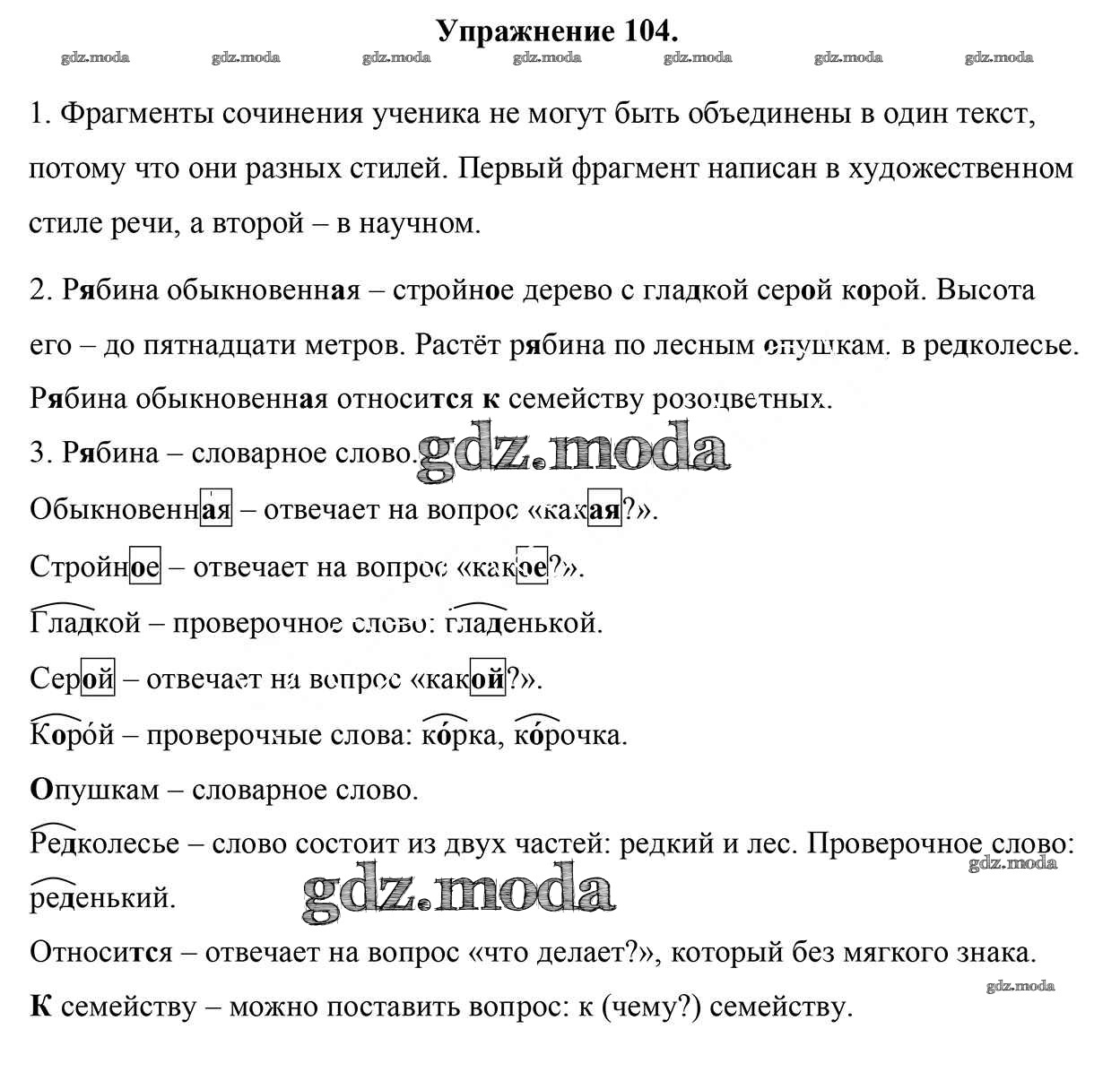 ОТВЕТ на задание № 104 Учебник по Русскому языку 5 класс Мурина