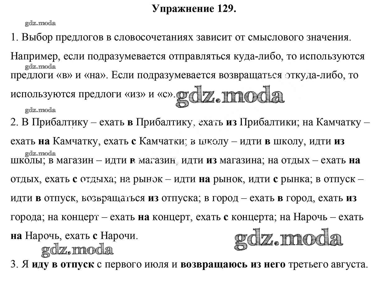 ОТВЕТ на задание № 129 Учебник по Русскому языку 5 класс Мурина