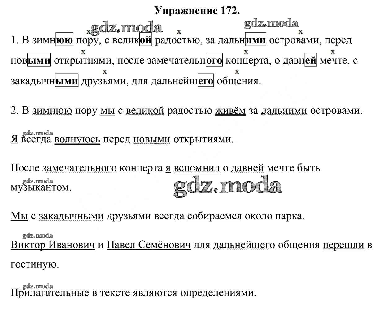 ОТВЕТ на задание № 172 Учебник по Русскому языку 5 класс Мурина
