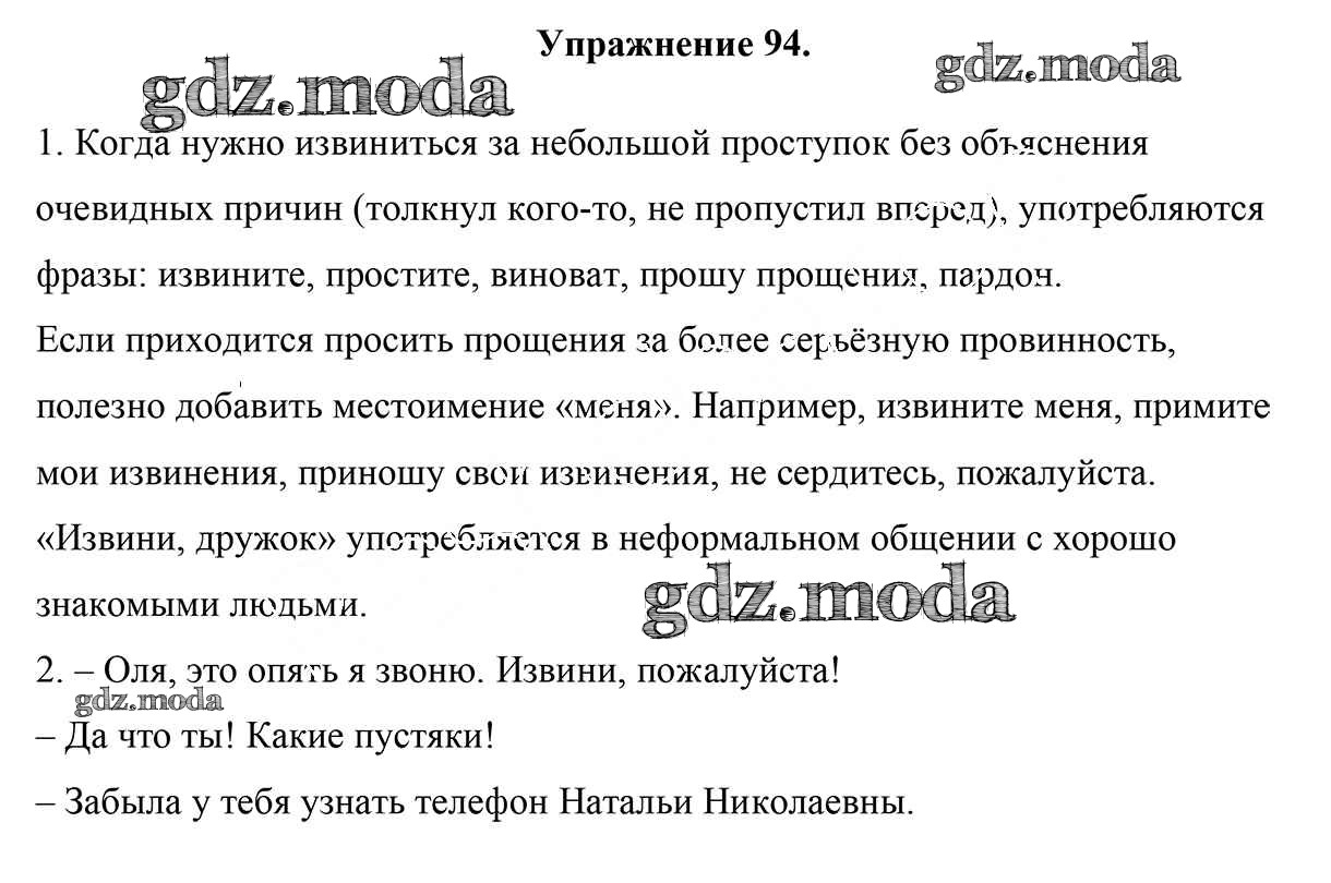 ОТВЕТ на задание № 94 Учебник по Русскому языку 5 класс Мурина