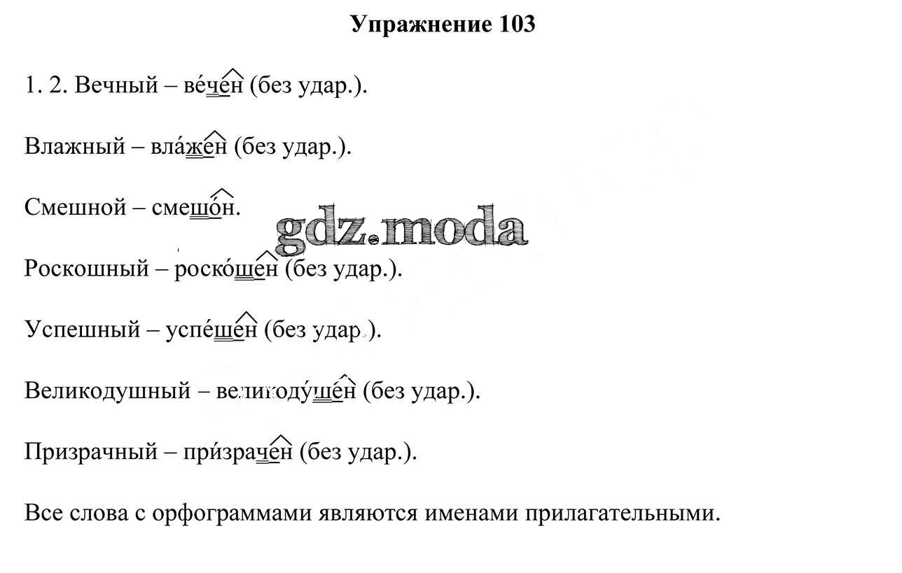 ОТВЕТ на задание № 103 Учебник по Русскому языку 5 класс Мурина