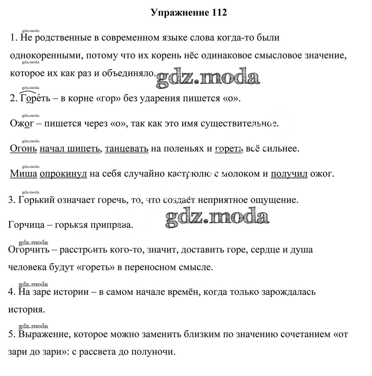 ОТВЕТ на задание № 112 Учебник по Русскому языку 5 класс Мурина