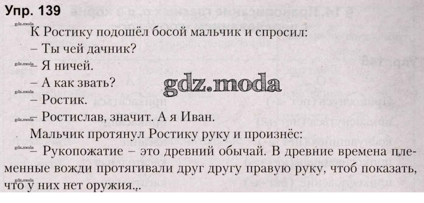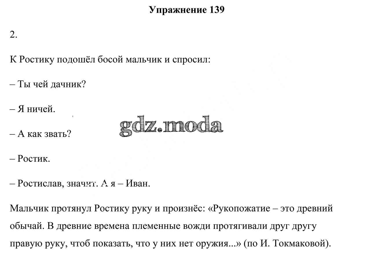 ОТВЕТ на задание № 139 Учебник по Русскому языку 5 класс Мурина